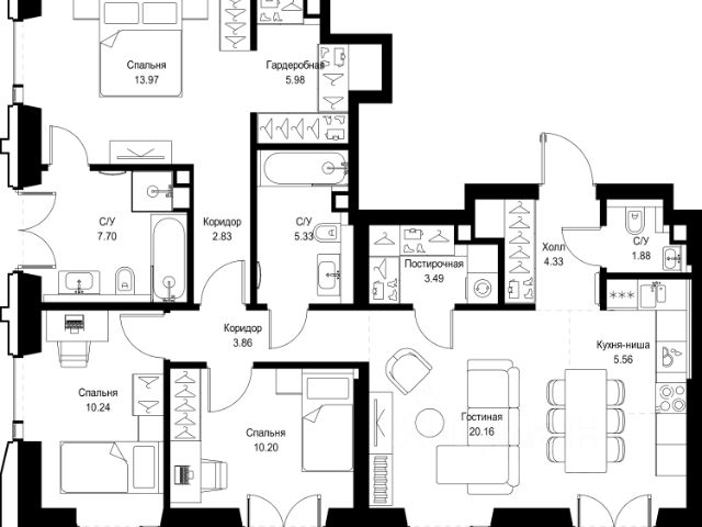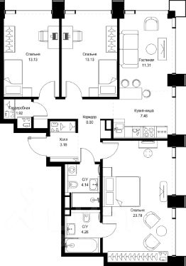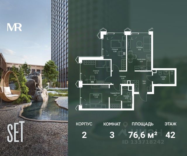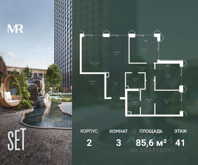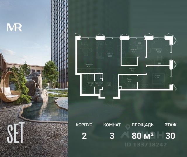 Прямая продажа от застройщика. В ЖК SET продается 3-комнатная квартира площадью 82.80 м², расположенная в корпусе Б, на 16 этаже 59 этажного дома. SET имеет стратегически выгодное расположение в ЗАО, в районе с большой историей и блестящим будущим: между природной зоной долины реки Сетунь и Кутузовским проспектом. В рамках возведения первой очереди предусмотрено три корпуса высотой 18, 45 и 59 этажей. На верхних этажах спроектированы общедоступные смотровые площадки с панорамным обзором на центр столицы. Преимущества проекта: • Функциональные планировочные решения • Контроль проникновения через входную дверь • Система управления освещением и температурой в квартире • Система защиты от протечек с функцией перекрытия воды • Вход в подъезд по биометрическим считывателям Face ID • Скоростные лифты • Двухуровневый подземный охраняемый паркинг на 495 машино-мест Застройка SET включает в себя не только жилые корпуса, но и инфраструктурные объекты. Все необходимое для повседневного комфорта будет расположено в шаговой доступности: • Фитнес-клуб с бассейном • Ведущая городская школа, детский сад и школа искусств • Центр культуры и досуга • Медицинский центр • Кафе и рестораны Расположение комплекса: Пешком: • Метро "Давыдково" - 17 минут • Парк "Долина реки Сетунь" - 3 минуты • Открытие новых станций метро в шаговой доступности в будущем Инфраструктура: Разнообразить свой день резиденты VEER смогут также проводя больше времени на свежем воздухе. Двор разделен на 4 зоны разных эмоций и действий, которые пересечены и соединены веерными прогулочными маршрутами: • Спортивная площадка устроена в глубине ""Кленовой рощи"" • В ""Чайном домике"" будет создан навес с утеплением для отдыха в любую погоду • Площадки для детей воплотятся в ""Волшебный лес"" с цветами, зеркалами и световым дизайном • ""Центральная площадь"" устроена у водного оазиса живописного пруда. " На машине: • "Москва-Сити" - 15 минут • Садовое кольцо - 20 минут • ТЦ "Океания" - 8 минут • ТЦ "Времена года" - 13 минут • Сколково - 12 минут • Гребной канал - 17 минут Компания MR предлагает своим клиентам специальные условия приобретения квартир в рамках программ ипотечного кредитования от банков-партнеров.