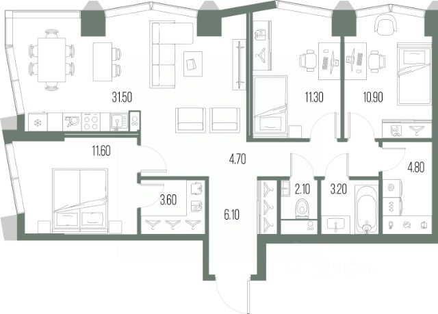 Продается трехкомнатная квартира с предчистовой отделкой в ЖК "Северный Порт" на 4 этаже. Общая площадь: 96.4 кв.м., жилая: 37.8 кв.м., площадь просторной кухни-столовой: 33.6 кв.м. Квартира угловая, очень светлая, естественная вентиляция при открытии окон. В квартире два совмещенных санузла. Высота потолков 3.15 м. Квартира находится в корпусе 7.3. Дом монолитный, одноподъездный, высотой 58 этажей. На этаже 10 квартир. В подъезде 4 пассажирских и 4 грузовых лифта. Окончание строительства - 1 квартал 2028 года. Оформление сделки по договору долевого участия. В шаговой доступности от жилого комплекса расположены станции метро (расстояние по прямой): "Беломорская" (1.1 км), "Планерная" (1.5 км), "Речной вокзал" (1.6 км), также недалеко от этого корпуса расположена станция метро "Ховрино". В проекте "Северный Порт" реализованы авторские решения девелопера LEGENDA, которые представлены уникальными фасадными решениями, коллекцией дизайнерских квартир, а также инновационным оснащением комплектацией TechnoBox - полностью технологически подготовленным пространством для любых современных сценариев жизни. В 1-ой очереди строительства проекта "Северный Порт" авторская комплектация TechnoBox представлена в корпусах 7.1 и 7.3 и включает в себя два направления: Технологически подготовленное пространство: - Smart Home Ready - стационарное и удаленное управление квартирой. - Air Design - всегда свежий воздух, никакого шума и пыли. - Мультизональное кондиционирование. - Мультисервисная сеть - единая сеть коммуникационных систем. Готовность к декорированию: - Шумоизоляция - комплексные меры для защиты от лишнего шума. - Подготовка стен - все стены подготовлены к отделке дизайнерскими материалами. - Выровненный пол - полы выровнены стяжкой из цементно-песчаной смеси, повышающей механическую прочность, и готовы к укладке покрытия. - Электрические сети - коммуникации расположены с учетом рекомендаций по расстановке мебели и техники. "Северный порт" от LEGENDA входит в крупномасштабный проект комплексного развития территории Северного речного порта, реализуемый правительством Москвы, и представляет собой микс жилой, коммерческой, социальной и общественной инфраструктуры. Автором концепции обустройства территории выступило архитектурное бюро Сергея Скуратова. Созданный дизайн-код лёг в основу проекта, разработанного LEGENDA совместно с архитектурным бюро KAMEN Architects. Город ставит новый акцент, создавая мощный центр притяжения в экологичной локации у Северного речного вокзала. Близость к воде, парковым зонам и футуристичный архитектурный образ определяют потенциал развития проекта на несколько десятилетий вперед. Важной частью проекта станет строительство самой протяженной благоустроенной набережной, которая соединится с парком Северного речного вокзала и создаст уникальное прогулочное пространство длиной 3,2 км, вдоль которого будет организован современный торговый променад. В основе концепции благоустройства лежит