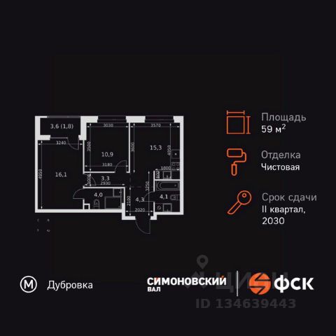 Прямая продажа от застройщика! Жилой Комплекс класса бизнес+. Продаётся 3-к квартира номер 49 общей площадью 59.8 кв.м. на 6-м этаже 27 этажного здания. Предчистовая отделка. Цена с учётом скидки. Особенности квартиры: - Организуем показ в удобное для вас время! - Мастер-зона с санузлом и гардеробной. Всё для вашего комфорта и удобства, включая личный санузел и гардероб. - Просторная спальня, в которой можно разместить большую кровать. - Линейная планировка - максимальная функциональность и удобство. - Гостевой санузел - комфорт и удобство для ваших гостей. - Душ помимо ванной - дополнительное удобство для вашей семьи. - Евроформат - просторное и удобное жилье с отличной планировкой. - Гибкая планировка - создайте пространство по своему вкусу. - Можно оборудовать рабочее место - комфорт для работы и учёбы. - Гардеробная - удобство для хранения и организации вещей. - Лоджия - уютное место для отдыха и тишины. Квартира с предчистовой отделкой. Вам не придется заниматься черновыми и трудоёмкими работы, а чистовую отделку и дизайн - сделайте на свой вкус. Информация о комплексе: Проект класса бизнес+ в историческом районе Москвы с насыщенной городской инфраструктурой. Приватное расположение внутри квартала, закрытый ландшафтный двор с водопадом, инженерия по золотому стандарту ФСК, сбалансированное благоустройство и подземный паркинг делают жилой комплекс "Симоновский Вал" идеальным местом для семьи. Террасы "Симоновского Вала" - уникальный архитектурный элемент, который не только формирует выразительный облик комплекса, но и становится естественным продолжением вашего жилого пространства. Приватная смотровая площадка с панорамными видами на центр Москвы и изгибы Москвы-реки открывает безграничные возможности для премиального образа жизни. Лобби проекта наполнено светом и спокойствием - здесь хочется ненадолго задержаться, перевести дыхание. Мягкое освещение создают авторские светильники: они подчеркивают архитектуру пространства и не утомляют глаз. Акцентный элемент - мозаичное панно с растительным мотивом, выполненное из керамических пластин, которое придает интерьеру изысканность и художественную выразительность. Транспортная доступность: Метро "Дубровка" - 7 мин. пешком Метро "Волгоградский проспект" - 17 мин. пешком Станция МЦК "Дубровка" - 9 мин. пешком Внутренняя инфраструктура: Район, избалованный хорошей инфраструктурой, предъявляет высокие требования к сервисам и магазинам под вашими окнами. И "Симоновскому Валу" есть что ответить. В его общественном дворе расположеныв магазины со свежайшими продуктами и бытовыми товарами, кофейни с безупречным капучино и здоровыми десертами, барбершоп, салон красоты и другие сервисы. Квартира с предчистовой отделкой - ваш дизайн без черновых работ