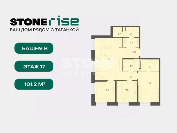 • ✓ В базе Циан 27 3-комнатных квартир в ЖК STONE Rise в Москве