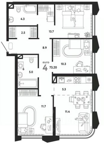 Самая ТОП-овая планировка,со своей гардеробной и санузлом, дополнительный гостевой санузел с прачечной!