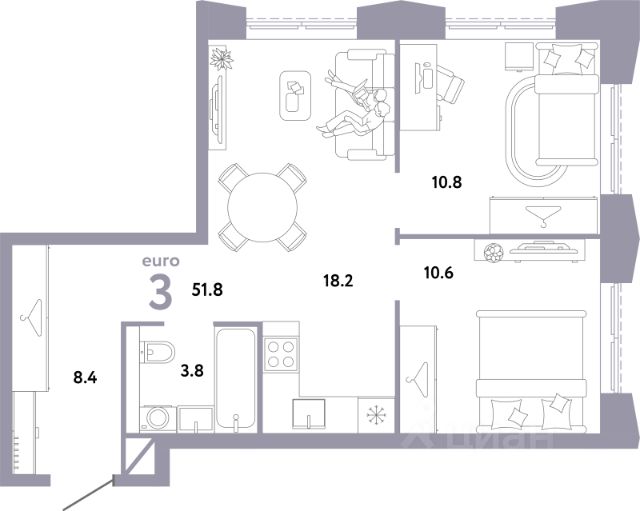 Продаётся 3-комнатная квартира в строящемся доме (Дом 1 (участок 3/4а)), срок сдачи: I-кв. 2028, общей площадью 50.8 кв.м., на 29 этаже. Новый жилой дом от застройщика "Страна Девелопмент" расположен по адресу Россия, Москва, Иловайская улица