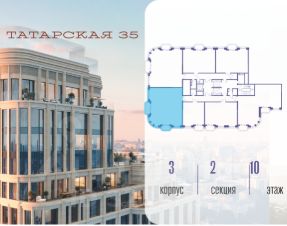 Продается просторная квартира площадью 112.60 м2 в жилом комплексе ТАТАРСКАЯ, 35. Квартира находится в 2 секции корпуса 2. Этаж 12-й из 19. Квартира без чистовой отделки, с просторной кухней 26.80 м2. Жилая площадь 46.00 м2. Высота потолка от 3.50. ТАТАРСКАЯ, 35 - новая архитектурная доминанта Замоскворечья, достопримечательность на фотопанорамах исторического центра Москвы. Элитный дом, созданный для тех, кто умеет смотреть далеко вперед, мыслить масштабно и воплощать собственный сценарий жизни. Вдохновляющие прогулки по променаду набережной, в уютных переулках, в парке "Зарядье", в Михайловском саду и Репинском сквере. Наслаждение высоким искусством в Третьяковской галерее, Доме Музыки, театральном музее им. А.А. Бахрушина, театре на Малой Ордынке. За окнами - Кремль, высотка на Котельнической, панорамы Замоскворечья и острова Балчуг, огни Садового кольца. Собственные спорт-румы, детская, репетиторская, бьюти-пространства, деловое пространство с коворкингом, переговорной и сигарной. Собственный трехуровневый фитнесс-центр с бассейном, тренажерным залом, сауной, хаммамом, массажным кабинетом. Площадь двора - 1,8 га, половина территории покрыта деревьями, кустарниками и лужайками. Дом расположен внутри Садового кольца - отсюда в считанные минуты можно добраться до важнейших мест столицы: достопримечательностей и парков, театров и ресторанов, деловых и административных центров. 7 минут до Кремля на автомобиле, 15 минут до Третьяковской галереи и 8 минут до Садового кольца пешком. Планировочные решения и визуализации предварительны, возможны изменения.