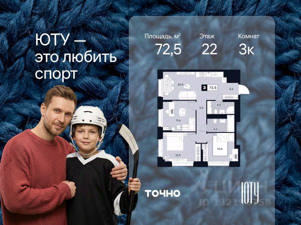 Новогодний марафон скидок! Выгода до 20% в декабре. ЮТУ-камерные небоскребы бизнес-класса с исключительной архитектурой, видовыми квартирами и подходом к большой воде-благоустроенной набережной канала имени Москвы. Проект ЮТУ создает идеальный баланс жизни в городе. Это приватный оазис, где в любой момент можно сменить контекст и выбрать любой из тысячи маршрутов к активному отдыху и ярким впечатлениям. Локация премиум-класса • Первая линии в прибрежной части Химкинского водохранилища • Исключительно тихий и зелёный район Южное Тушино • За 2 минуты можно спуститься к воде, за 10 минут найти зеленые парки и готовую инфраструктуру, за 30 минут доехать до Кремля Концепция проекта • Две футуристичные башни, соединенные торговой галереей от бюро ATRIUM • 60 неповторяющихся планировок: квартиры с угловым "плавным" панорамным остеклением, мастер-спальнями и гостиными до 39м² и просто очень большие квартиры площадью до 128,6 м² • Беспрецедентная коллекция видов-в проекте 80 % видовых квартир Чувство эксклюзивности • Своя приватная жилая экосистема -только для резидентов домов • Лаунж-терраса на крыше • Пространство скрыто от посторонних глаз-с трех сторон его окружают строения проекта Прогрессивные технологии • 3-уровневая система безопасности (Face ID, BLE-метки, видеонаблюдение) • Умный паркинг с распознаванием номеров Проект федерального девелопера ТОЧНО-из ТОП-3 застройщиков России. Компания в проекте реализует ответственный подход к развитию пространств для благополучной жизни человека. И что в ЮТУ особенное воплощение приобретает концепция человекоцентричности, как заметная грань девелопмента ТОЧНО.