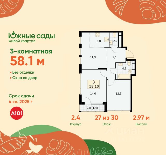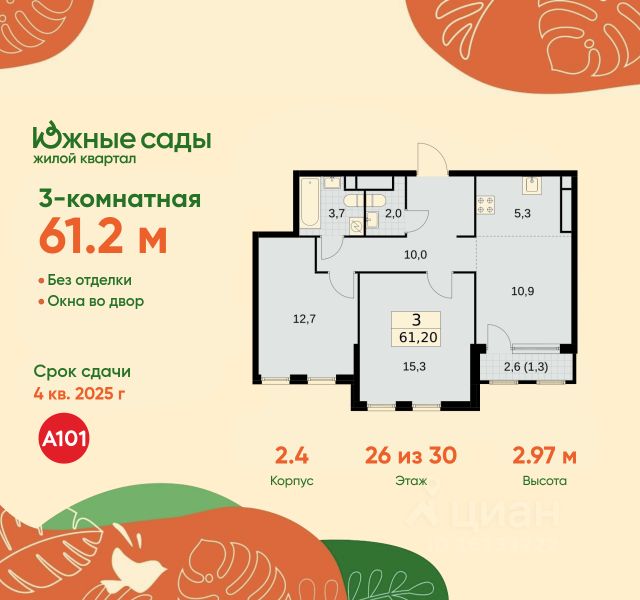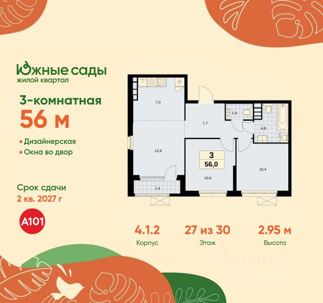 • ✓ В базе Циан 83 3-комнатных квартир в ЖК Южные сады в Москве