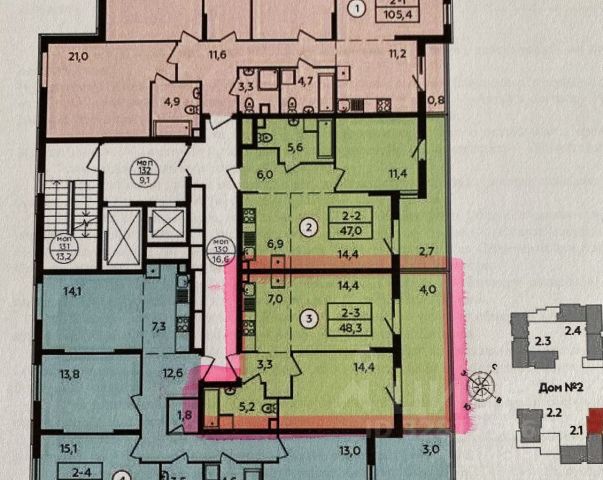 Дом — сталинка, 4 этаж из 5, подъезд с лифтом. Площадь 66,4 м², потолки 3,2 м. Квартира угловая, поэтому здесь много света и воздуха, толстые стены держат тепло зимой и прохладу летом, а на случай жары есть кондиционер.