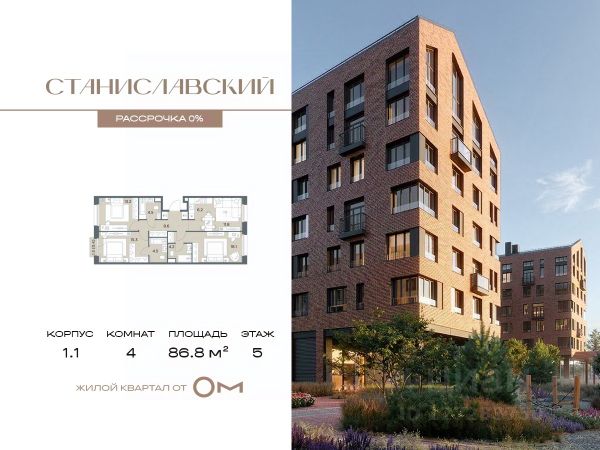 Беспроцентная рассрочка от застройщика. В продаже 4-комнатная квартира площадью 94.9 м², расположенная на 5 этаже в жилом квартале "Станиславский" — проекте бизнес-класса на Новорижском шоссе, всего в 10 минутах от Москвы. В квартире 172 Дом 1 (Корпус 1.1, секция 5) высота потолков — от 3 метров, просторная планировка с гардеробной и большой кухней-гостиной создают комфорт и свободу для воплощения ваших идей. В проекте есть разнообразные отделочные решения, что позволяет реализовать любые дизайнерские предпочтения и планировочные идеи. В "Станиславском" представлены квартиры на любой вкус и для любой семьи: студии, классические и европланировки, а также крупные 4- и 5-комнатные варианты. Все помещения предлагаются без отделки, что дает свободу для создания уникального пространства. Обустроенная территория предусматривает функциональное зонирование: зеленые бульвары, природные тропы, интерактивные зоны, центральная площадь с подиумом для мероприятий и спортивный кластер. Для жителей предусмотрены разнообразные сценарии досуга: тихие зоны для общения, массажные тропы и сад ароматных трав для оздоровления, всесезонные уличные игры и открытые поляны для спортивных и настольных развлечений. Также есть познавательная зона с огородом, скворечниками и микроскопами. В концепции ЖК "Станиславский" особое внимание уделено въездной зоне: здесь создана комфортная площадка для встреч с гостями, обрамленная живой изгородью. Отсюда также открывается доступ к специально оборудованной территории для выгула питомцев — всё продумано для удобства и уюта жителей.