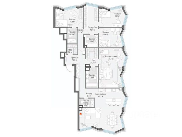 Просторная квартира площадью 173,4 м² с панорамными видами на Миусский парк, Москва-Сити, Останкинскую башню и Новослободскую ул. Продуманная планировка с мастер-спальней, тремя санузлами и двумя гардеробными, в том числе с окном в гардеробной и ванной. ЭНИГМИЯ — дом-скульптура, притягивающий взгляды и раскрывающий секрет красивой жизни. Загадочная красота окружает каждого, кто здесь живет, проявляясь в каждой детали. ЗНАКОВЫЙ ИСТОРИЧЕСКИЙ РАЙОН С АУРОЙ ПОДЛИННОЙ МОСКВЫ. ЭНИГМИЯ вписана в историческое окружение, как редкий камень в достойную оправу. Ее силуэт возносится над историческим центром, притягивая восхищенные взгляды своей совершенной формой и невероятным парящим мостом. • ЦАО, Тверской район • 3 минуты на автомобиле до Садового кольца АРХИТЕКТУРА, СОЗДАННАЯ ВОСХИЩАТЬ. Два элегантных корпуса высотой 15 и 19 этажей объединяет парящий мост-сад на уровне 16-го этажа, создающий редкий для центра столицы архитектурный образ. Авторский почерк бюро ADM узнается в каждой линии: плавные контуры фасадов расширяются снизу вверх, очаровывая выразительной пластикой света и тени, изгибы моста напоминают реку, застывшую в небе. УНИКАЛЬНЫЙ ПАРЯЩИЙ-ДВОР САД НА ВЫСОТЕ. На высоте 57 метров раскинулся парящий двор-сад — частный оазис в центре мегаполиса. Это пространство, где архитектура встречается с природой: много зелени, чистый и прозрачный воздух, насыщенный кислородом, обилие солнечного света и ничем не загороженные виды. • Уникальное игровое пространство KidSide, разработанное профильным "Бюро Scape"; • ViewSide кинотеатр; • Просекко-бар для вечерних встреч с видом на закат; • Зона отдыха с шезлонгами и гамаками; • Пространство для занятий йогой с видами на восход солнца; • Корнер для пикников с гриль-зоной. ДВА УРОВНЯ ВДОХНОВЕНИЯ UPSIDE CLUB. Еще одна грань красивой жизни — уникальный Upside Club. Upside Club — это пространства для отдыха и общения, где соседи становятся друзьями. • На высоте: PartySide, GameSide, FitSide, BeautySide, MeetSide, KidSide, ViewSide. • В лобби: приватный фитнес-клуб, бьютирум, переговорная, детская игровая комната. РОСКОШЬ КЛУБНОЙ ЖИЗНИ. Всего 92 резиденции образуют камерное сообщество тех, кто ценит тишину, комфорт и безупречную организацию жизни. • Управляющая компания с богатым опытом в элитном классе; • Сервис отельного уровня 24/7; • Valet- и bellman-сервис; • Арт-консьерж; • Отдельный вход для курьеров и помещение для хранения посылок; • Сервисные лифты. КОМАНДА ПРОЕКТА: • CTR Construction генеральный подрядчик; • ADM архитектурное бюро; • Oleg Klodt Architecture and Design планировочные решения резиденций; • Бюро Чехарда концепция детской игровой комнаты; • SCAPE концепция благоустройства на высоте и на земле.