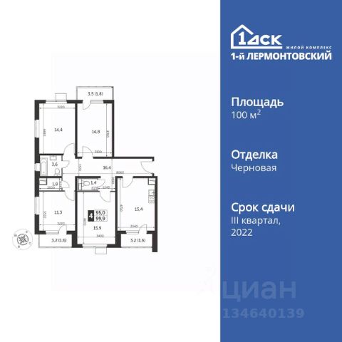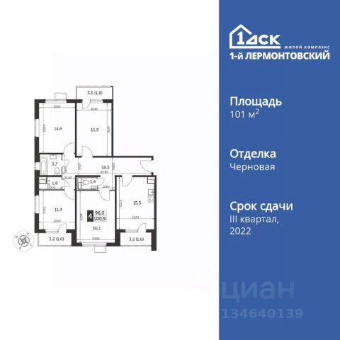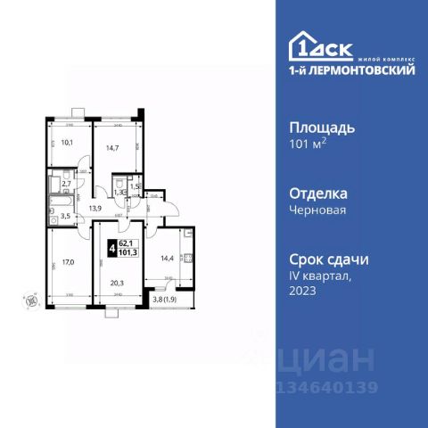 Прямая продажа от застройщика! Жилой Комплекс класса Комфорт Плюс. Продаётся 4-к квартира номер 633 общей площадью 101 кв.м. на 13-м этаже 25 этажного дома. Отделка Whitebox. Особенности квартиры: - Просторная спальня, в которой можно разместить большую кровать. - Распашная планировка - отличное сочетание удобства и свободы. - Гостевой санузел - комфорт и удобство для ваших гостей. - Душ помимо ванной - дополнительное удобство для вашей семьи. - Раздельный санузел - больше удобства для всех членов семьи. - Просторная кухня - место для семейных ужинов и кулинарных экспериментов. - Линейная кухня - функциональность и практичность в одном решении. - Ниша под шкаф - компактное и удобное место для вещей. - Кладовая - дополнительное пространство для хранения. - Лоджия - уютное место для отдыха и тишины. Квартира с предчистовой отделкой (White box). Вам не придется заниматься черновыми и трудоёмкими работы, а чистовую отделку и дизайн - сделайте на свой вкус. Информация о комплексе: Ощущение уютного дома должно начинаться с подъезда. Мы постарались предусмотреть все нюансы, чтобы наши лифты отвечали самым строгим современным требованиям. Двор без машин, закрытое, безопасное, охраняемое место с удобным доступом для вашего авто, более чистый воздух и гарантированное место для стоянки - и это далеко не преимущества наличия подземного паркинга. А наличие кладовых позволит вам поддерживать идеальный порядок и уют в вашей квартире! "1-й Лермонтовский" расположился недалеко от уже сложившегося зеленого окружения - Люберецкого парка и Жулебинского лесопарка, переходящего в природно - исторический парк "Кузьминки". Если вы предпочитаете активный семейный отдых на свежем воздухе - в округе мест для него предостаточно. С востока он граничит со столичным районом Некрасовка. С северной стороны - с развитым современным микрорайоном "Красная Горка". Удачное расположение дарит жильцам возможность передвижения как на своем автомобиле, так и на общественном транспорте. Транспортная доступность: В шаговой доступности ж/д станция "Люберцы-1". 5 минут на автомобиле до станций метро "Некрасовка", "Котельники", "Лермонтовский проспект" Внутренняя инфраструктура: Свободно перемещайтесь по внутренней территории в безбарьерной среде! На территории комплекса созданы все условия как для активного образа жизни, так и для спокойного времяпрепровождения: - игровые площадки для детей разного возраста. - площадки воркаута, спортивные комплексы с зонами для детского и взрослого спорта. - зоны отдыха с пешеходными дорожками и аллеями. Также, к вашим услугам: 4 общеобразовательные школы, 7 детских садов, спортивные и танцевальные, школы, поликлиники, множество магазинов и супер-маркетов, включая Ашан и несколько крупных ТЦ в шаговой до