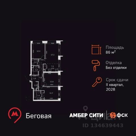 В жилом квартале продаётся 4-комнатная квартира площадью 75.00 кв.м без отделки. Квартира расположена на 59 этаже 64 этажного корпуса 2 в жилом комплексе комфорт класса Левел Звенигородская (компания Level Group/Левел групп).