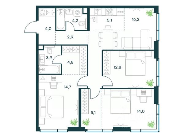 В квартире располагаются : 3 изолированных спальни, кухня-гостиная, три с/у, постирочная, холл. Панорамные эркерные окна! Просторная планировка! Большая дворовая территория, заполнена инфраструктура внутри самого ЖК: совсем скоро откроют "Летово kids" (уже в сентябре этого года), "Азбука Daily", "Здрасте", кафе "Среда", "Surf Coffee", "SIORI" - мебельный магазин, совсем скоро появится салон красоты и M2 Органик ресторан и магазин, есть аптека, цветочный магазин, винтовка и многое другое. Совсем скоро на территории 4-ой очереди будет уже муниципальная школа и ДОУ.
