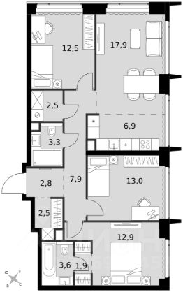 К продаже предлагается уникальный 4-х комнатный видовой апартамент от застройщика площадью 232,5 кв м, расположенный на 75 этаже знакового небоскреба ОКО. Идеальный лот для большой семьи, а также для ценителей личного пространства и масштаба, полностью готов к проживанию, ключи передаются в день покупки. Все 3 спальные комнаты (29,7 кв.м, 26,3 кв.м и 24,6 кв.м) имеют собственные гардеробные и ванные. Отличительной особенностью данного апартамента является зона master-bedroom (главной спальни), органично отделенная от общественного пространства и имеющая собственную ванную комнату с панорамным окном площадью 18,5 кв.м, а также большую гардеробную, что создает приватность и комфорт проживания. В санузлах установлена премиальная сантехника Fantini. Высококачественные отделочные материалы с использованием природного камня, полы из натурального дерева. Залитая светом кухня-гостиная площадью 72,8 кв.м укомплектована итальянским кухонным гарнитуром Rifra и техникой Kuppersbusch. Из всех панорамных окон открываются завораживающие виды на Парк Победы, Лужники и башни Москва-Сити. Многофункциональный комплекс ОКО - это одно из самых технологичных воплощений высотных проектов в Москве и один из самых высоких жилых небоскребов России и Европы высотой 354 метра. В собственной инфраструктуре и окружении комплекса продумано и реализовано все, что необходимо для жизни: от концептуальных ресторанов, премиального фитнес-клуба, школ танцев на высоте до магазинов в одном из крупнейших в Москве торговом центре. Премиальный сервис 24/7: служба безопасности, ресепшен, консьерж-сервис, подземный паркинг.
