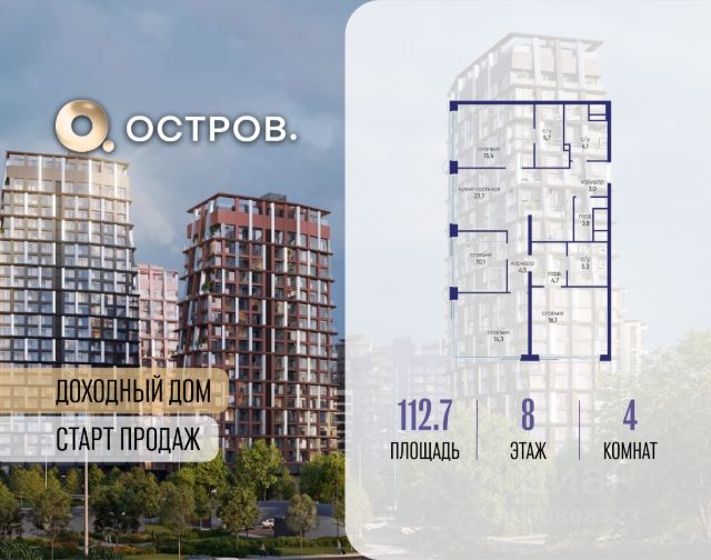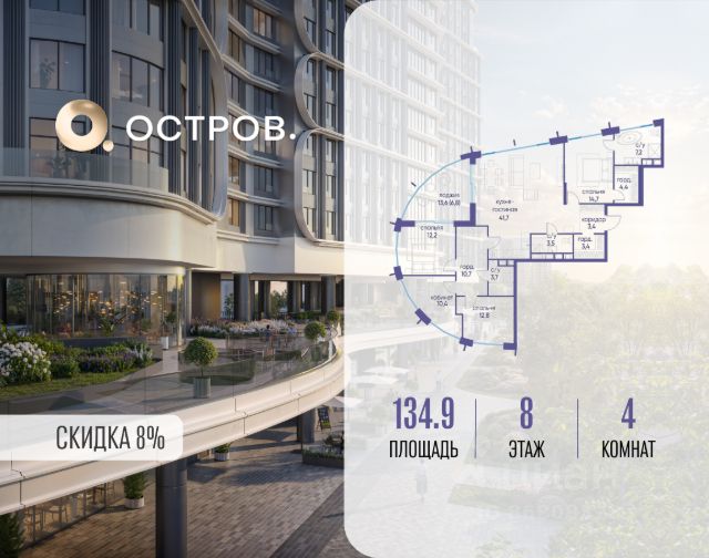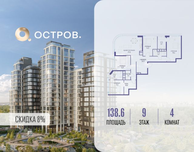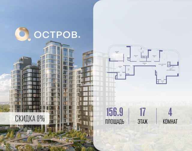 Скидка до 8% действует до 31.03.2026 г. при 100% оплате и не субсидированной ипотеке. Продаётся четырехкомнатная квартира от застройщика: общая площадь 124.90 м², жилая 53.90 м², кухня 35.00 м², 3, жилой квартал "Остров 7", корпус 7 (7 квартал) (секция 2). срок сдачи: 4-кв. 2025. , 3 санузла: 1 раздельный и 2 совмещенных. В жилой зоне 2 больших окна на одну сторону, хорошая инсоляция. Позвоните сейчас и забронируйте квартиру! Купите квартиру в доме у прибрежного парка, в квартале ОСТРОВ.7. Это семь корпусов премиум- и бизнес-класса в одном из лучших мест ОСТРОВА - между бульваром и парком, поблизости от реки. Стильные корпуса имеют узнаваемый вид благодаря бионической пластике фасадов, приподнятых над землей. Для жителей предусмотрены детский клуб, фитнес-рум, коворкинг, переговорные, лаунжи. На крышах устроены видовые общественные пространства с зонами для отдыха и спорта. Двор расположен на двух уровнях: нижний ландшафтный парк и верхняя городская терраса. ОСТРОВ.7 - часть жилого комплекса на западе Москвы, в 15 минутах езды от центра. Это настоящий заповедник посреди большого города, в окружении реки и 650 га заповедников. Здесь все необходимое находится по соседству: от детского сада до супермаркета, от фитнес-зала до серфинг-центра. На территории созданы все условия для отдыха и общения: клубная инфраструктура в домах и дворы-парки, набережные и променады, маршруты для спортсменов, детей и возрастных жителей. В нескольких минутах ходьбы расположена станция метро "Терехово" БКЛ. На автомобиле - 10 минут до Москва-Сити и 15 минут до Садового кольца.