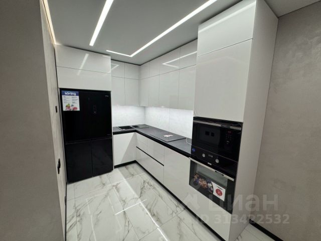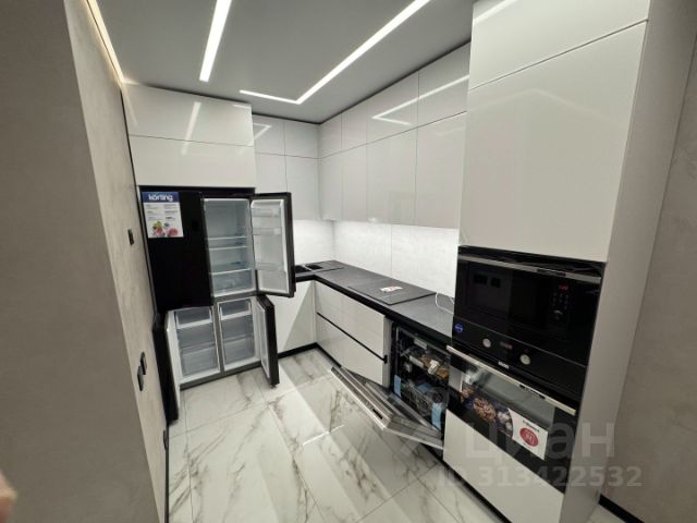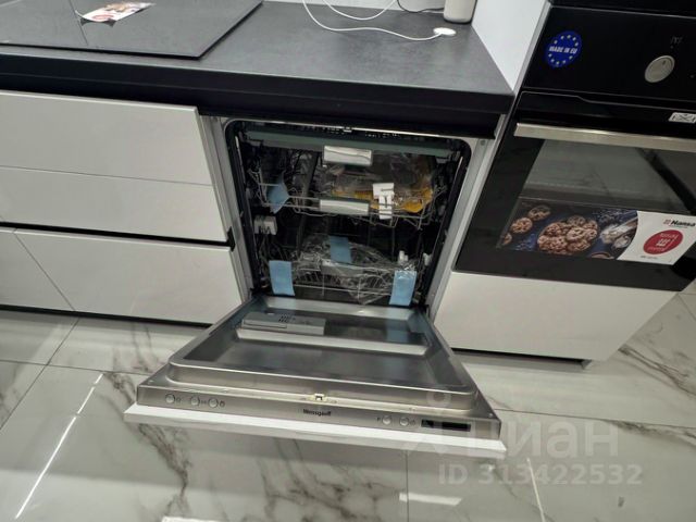 - кухня-гостиная с новой полноценной стильной кухней и всей новой встроенной техникой торговой марки Weissgauff - вытяжка, духовой шкаф, варочная панель, холодильник ноу фрост, вместительная посудомоечная машина марки TUVIO