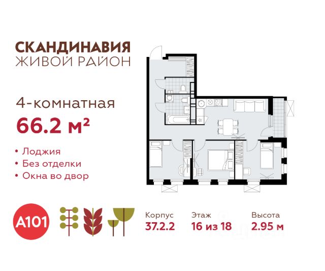 Продается четырехкомнатная квартира 182 в новостройке Жилой район "Скандинавия" по адресу Москва, ТиНАО, Новомосковский АО, Сосенское С/П, Коммунарка пос., жилой комплекс Скандинавия, 37.2.1. Общая площадь квартиры - 87.70 кв. м., этаж 18 из 18, секция 1. Тип проекта, по которому построен дом - монолит, компания-застройщик - ООО "А101". Стоимость квартиры - 36295522 Р. Срок сдачи - 1 квартал 2026. ПРЕДЛОЖЕНИЯ ОТ ЗАСТРОЙЩИКА В ФЕВРАЛЕ 2026: Скидки до 10% на все квартиры. Только в офисах продаж до 28 февраля. Ипотека от 13,9 % для всех! На весь срок. "Семейная ипотека" вернулась. Ставка от 3,5 % на весь срок! Без удорожания! Выгодное ипотечное комбо: Ипотека от 2200 р./мес. и от 6 % после рождения ребёнка! Ипотека для всех "Держи пять!" - ставка 5 % на 2 года! *более подробную информацию по скидкам и акциям уточняйте в отделе продаж ЖК "Скандинавия" на границе Бутовского лесопарка (1610 га) - это баланс качественного жилья и сервисов, зелёных пространств для активного и созерцательного отдыха. Выразительная архитектура и цветовая гамма монолитных корпусов комфорт- и бизнес-класса (8-17 этажей) созвучны скандинавским мотивам, органично интегрированы в великолепный природный контекст. Огороженные дворы свободны от машин, в них продуманы места для отдыха и работы на свежем воздухе, озеленение, детские и спортивные площадки. Для прогулок, встреч и районных праздников - площадь Туве Янссон с "сухим" фонтаном, вековыми дубами и единственным в мире памятником писательнице; пешеходный променад 2 км; 3 крупных природных ручья; более 15 км велосипедных и прогулочных дорожек с арт-объектами. Инфраструктура района включает современные школы и детские сады, центр впечатлений, фитнес-клубы, развивающие и творческие центры, магазины, кафе, салоны красоты. На подземных этажах - паркинги и кладовые. Преимущества "Скандинавии": - ст. метро "Потапово" - 100 м от ближайших домов (открыта!) - удобные выезды на трассу Солнцево - Бутово - Варшавское шоссе и ул. Бачуринская - свои школы и детские сады - инфраструктура на первых этажах и рядом с домом - лесопарк, природные водоёмы, прогулочные маршруты