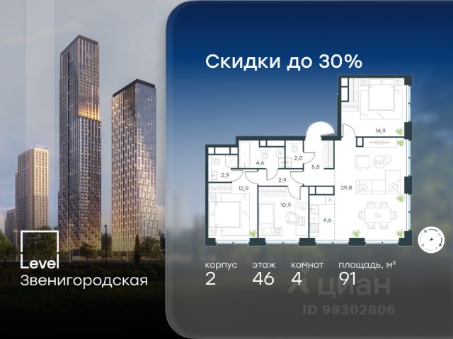 Продаются 4-к апартаменты площадью 100.0 кв.м. на 25-м этаже 28 этажного дома в "Emotion" от ГК ОСНОВА Emotion включает в себя 4 корпуса переменной этажности, собственный спа-центр с открытым бассейном, офисный центр с конференц-залом и амфитеатром, подземный паркинг, кафе, супермаркет, а также специально отведенные пространства для проведения частных и детских мероприятий, организации досуга и заботы о своей красоте и здоровье. Проект бизнес-класса находится в центре территории Большого Сити в 600 метрах от набережной Москвы-реки в окружении 4-х действующих крупных транспортных развязок, что позволяет минимизировать пробки на пересекающих транспортных потоках. Emotion - это воплощение эргономичности и функциональности. Каждый сантиметр пространства создан для того, чтобы приносить вам пользу, помогать быть всегда быть активными, успешными и эффективными, оставаться в тонусе, как можно больше успевать и при этом не растрачивать зря свои ресурсы.