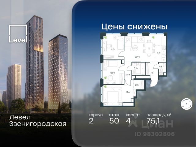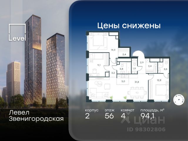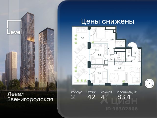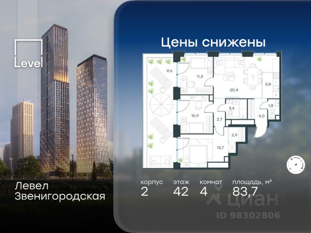 Продаются 4-к апартаменты площадью 85.7 кв.м. на 6-м этаже 28 этажного дома в "ЭМОУШН" от ГК ОСНОВА "ЭМОУШН" — многофункциональный комплекс апартаментов бизнес-класса в престижном районе Хорошёво-Мнёвники (СЗАО), новый выразительный акцент территории Большого Сити. Проект включает 4 корпуса переменной этажности со смелой концептуальной архитектурой от бюро КАМЕНЬ. В составе комплекса — собственный СПА-центр с открытым всесезонным бассейном, офисный центр с конференц-залом и амфитеатром, коворкинг, двухуровневый подземный паркинг, кафе и ресторан, аптеки и супермаркет, а также приватные пространства для резидентов: досуг, красота и здоровье, частные и детские мероприятия. Дополняют концепцию авторское благоустройство, прогулочные зоны, фонтан, скульптуры. Локация: • 600 м до набережной Москвы-реки • 5 минут пешком до м. "Звенигородская" • 20 минут до м. "Полежаевская") • удобный выезд на Звенигородское шоссе • 5 минут до ТТК •10 минут до Москва-Сити. "ЭМОУШН" — это про эргономику и функциональность: • панорамное остекление, видовые террасы • дизайнерские лобби с потолками до 4,7 м • система "Умный дом" и ресепшен-служба 24/7 — чтобы жить активнее, успевать больше и не тратить ресурсы впустую. Стадия строительства — монолит готов, высокая стадия готовности, сдача в 2027 году. Проект также подходит под инвестиционные сценарии. Предусмотрена временная регистрация.