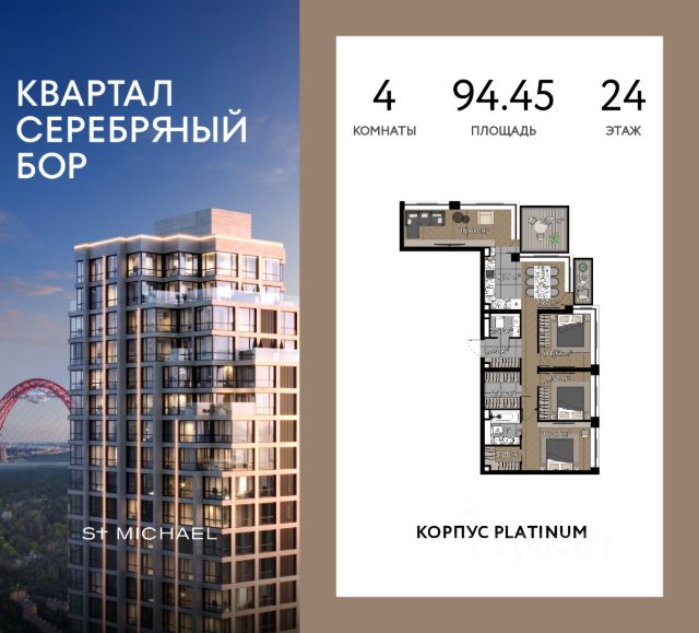 Премиальный "Квартал Серебряный бор" — проект в престижной локации с богатой историей и шаговой доступностью до набережной Москвы-реки и парка Серебряный бор. Архитектура Разрабатывалась Apex Project Bureau совместно с британским архитектором Саймоном Скоттом — признанными экспертами в России и мире. Главной идеей было создание проекта, гармонично сочетающимся с природным памятником — парком Серебряный бор. Рисунок квартала формируют четыре разновысотные башни с приватными террасными уступами. В больших панорамных окнах отражается небо, отчего здания выглядят воздушными. Благодаря технологичным алюминиевым витражам площадь остекления максимальна — даже зимой квартиры будут наполнены естественным светом. Благоустройство Проект благоустройства "Квартала Серебряный бор" был разработан знаменитым архитектурным бюро GAFA Architects. Специалисты создали благоустройство, которое не только дополняет архитектуру комплекса, но и становится продолжением природного ландшафта. Предусмотрено несколько ландшафтных зон для всех возрастов и разных активностей. В жаркий полдень жители смогут насладиться теплым солнцем возле открытого бассейна на шезлонге или на мягком газоне. Здесь же можно наблюдать восхитительные закаты. Для детей предусмотрены игровые площадки и полноценный игровой плейхаб "Шатер", рассчитанные на разные возрастные группы. Для мам будет беседка, чтобы можно было с комфортом наблюдать за детьми. А для подростков и их родителей будет работать воркаут зона, которая вполне может заменить фитнес-клуб. Локация Жители пользуются всеми преимуществами мегаполиса и развитой транспортной сетью: одинаково быстро до Кремля и "Москва-Сити". В 10 минутах пешком — Серебряный бор: пляжи, сапсёрфинг, прогулки, обеды на свежем воздухе. В 15 минутах на авто — парк "Крылатские холмы" (175 гектаров, 60 м над рекой), где горный рельеф сочетается с лесами из берёз, дубов, клёнов и лип. Редкие форматы планировок • Квартиры с просторными террасами — выход на свежий воздух прямо из дома, гармония природы и городской роскоши. • Квартиры с угловым остеклением — максимальный свет и панорамные виды на природу и город, создающие атмосферу свободы и комфорта. • Урбан-виллы — сочетание пространства загородной резиденции и преимущества городской жизни для тех, кто ценит приватность и комфорт. • Пентхаусы — панорамное остекление, террасы с видами на Серебряный бор и "Москва-Сити", индивидуальные планировки для создания дома мечты.