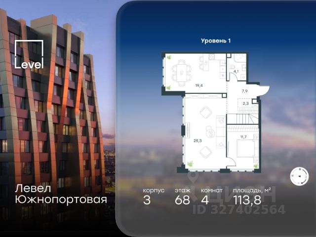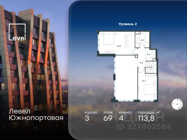 Цена указана с учётом скидки при 100%-й оплате, несубсидированной ипотеке, рассрочке (кроме программы "Рассрочка 0%"). В северной части района Печатники продается 4-комнатная квартира площадью 81.00 кв.м без отделки. Квартира расположена на 47 этаже 47-этажного корпуса 2 в жилом комплексе комфорт-класса Левел Южнопортовая (компания Level Group/Левел групп). Отличная транспортная доступность: - 10 мин. пешком до станции метро "Кожуховская"; - 20 мин. пешком до станции МЦК "Дубровка"; - 3 мин. на авто до ТТК; - 13 мин. на авто до Садового кольца; - 15 мин. на авто до Бульварного кольца. Продуманный архитектурный проект: - авторская архитектура от бюро СПИЧ; - уникальные виды на реку, парки и достопримечательности города; - высота потолков в квартирах до 6 м; - окна высотой до 1,87 м с высоким коэффициентом сопротивления теплоотдаче. Расположение: Жилой комплекс Левел Южнопортовая строится в северной части района Печатники - самой приближенной к центру. Здесь будет сформирован новый район "Южный порт", где построят крупный жилой и общественно-деловой центр, аналогичный Москва-Сити. В течение 10-12 лет в этом месте появятся не только жилые дома, но и развитая инфраструктура для жизни и работы. А еще совсем рядом находится набережная Москвы-реки, где планируется построить причалы для речных трамвайчиков и канатную дорогу. Уже сейчас вокруг жилого комплекса работают десятки магазинов и торговых центров, рядом расположено 6 парков, среди которых музей-заповедник "Коломенское". В 10 минутах пешком - 2 муниципальных и 2 частных детских сада, 7 общеобразовательных школ. Внутренняя инфраструктура: Для отдыха жителей в каждом корпусе предусмотрено лобби, оснащенное местами для отдыха, гостевыми санузлами и лапомойками, а в отдельных корпусах - камином. За счёт больших окон и высоких потолков пространства будут наполнены воздухом и светом. На первых этажах жилого комплекса откроются магазины, салоны красоты, фитнес-центр. Для детей строятся собственные детский сад и школа. Благоустройство: Внутренний двор комплекса разработан совместно с бюро GAFA. Основная идея - создать аналог Центрального парка в Нью-Йорке, гармонично сочетая высотные здания и большое изолированное парковое пространство. Вся площадь двора-парка будет огорожена и составит более 2 га, из которых 45% - озеленение. Одним из самых важных ландшафтных элементов здесь станет небольшая речка, наполняющаяся во время дождя. Вокруг неё появится сеть из островов, внутри которых расположатся тематические зоны спорта и отдыха. Технологии и инженерия: - автоматическая передача в управляющую компанию показаний квартирных счётчиков; - телефонная связь, телевидение и интернет на базе оптической мультисервисной сети; - гостевой Wi-Fi в лобби и на территории двора; - единый ключ доступа для входа на территорию комплекса.