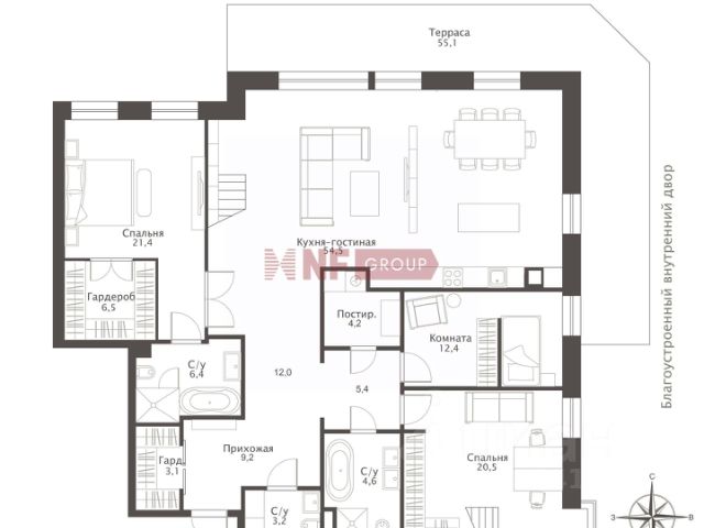 Вилла 2. Собственная вилла в центре столицы - это редкий и коллекционный формат городской недвижимости. Дом расположен в одном километре от Кремля, в глубине собственного двора-парка площадью 1,4 гектара. • Трёхэтажный городской дом площадью 522 м² • Участок - 260 м² с частным патио - 73 м² • Приватная терраса - 89 м² • Возможность установки дровяного камина • Возможность предусмотреть индивидуальный спа с бассейном • Прямой доступ в подземный паркинг • Возможность размещения до четырёх спален О доме "Лаврушинский" Пространство виллы продумано так, чтобы каждый этаж было легко наполнить собственным ритмом жизни. Нижние уровни можно организовать как семейные пространства - гостиную и кухню-столовую с выходом в сад, а также зону собственного спа с бассейном. Выше разместить приватные спальни, детские комнаты и кабинет. Кровля становится отдельной точкой притяжения: здесь за чашкой утреннего кофе видно, как город просыпается. А каждый семейный ужин на закате с видом на весь исторический центр становится незабываемым свиданием с самыми близкими. Частное патио позволяет создать палисадник, мини-сад, детскую игровую или тихую зону для отдыха. Прямой выход в подземный паркинг обеспечивает дополнительный комфорт. Жителям виллы доступна вся инфраструктура и премиальные сервисы дома "Лаврушинский", включая Clubhouse: фитнес с 25-метровым бассейном и спа, пространства для отдыха и продуманную детскую инфраструктуру. Здесь жизнь в знаковой локации центра города сочетается с тишиной и приватностью частного дома - без компромиссов. Девелопер проекта Sminex - лидер на рынке премиальных и элитных домов Москвы. С 2001 года построили более 100 проектов площадью 12 млн м² - покупатели выбирают у нас каждую третью квартиру в этом сегменте.