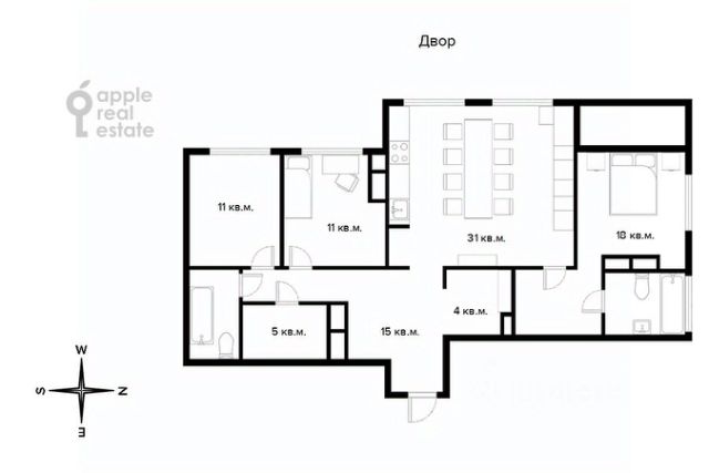 Потолки 3,1 м добавляют помещению воздушности и лёгкости, создавая атмосферу уюта и комфорта.