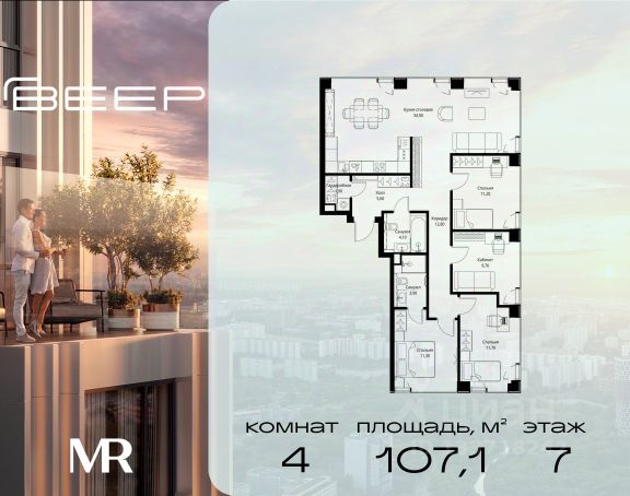 Прямая продажа от застройщика. В ЖК Сет продается 4-комнатная квартира площадью 120.20 м², расположенная в корпусе 3, на 3 этаже 45 этажного дома. Сет имеет стратегически выгодное расположение в ЗАО, в районе с большой историей и блестящим будущим: между природной зоной долины реки Сетунь и Кутузовским проспектом. В рамках возведения первой очереди предусмотрено три корпуса высотой 18, 45 и 59 этажей. На верхних этажах спроектированы общедоступные смотровые площадки с панорамным обзором на центр столицы. Преимущества проекта: • Функциональные планировочные решения • Контроль проникновения через входную дверь • Система управления освещением и температурой в квартире • Система защиты от протечек с функцией перекрытия воды • Вход в подъезд по биометрическим считывателям Face ID • Скоростные лифты • Двухуровневый подземный охраняемый паркинг на 495 машино-мест Застройка Сет включает в себя не только жилые корпуса, но и инфраструктурные объекты. Все необходимое для повседневного комфорта будет расположено в шаговой доступности: • Фитнес-клуб с бассейном • Ведущая городская школа, детский сад и школа искусств • Центр культуры и досуга • Медицинский центр • Кафе и рестораны Расположение комплекса: Пешком: • Метро "Давыдково" - 17 минут • Парк "Долина реки Сетунь" - 3 минуты • Открытие новых станций метро в шаговой доступности в будущем Инфраструктура: Разнообразить свой день резиденты Веер смогут также проводя больше времени на свежем воздухе. Двор разделен на 4 зоны разных эмоций и действий, которые пересечены и соединены веерными прогулочными маршрутами: • Спортивная площадка устроена в глубине ""Кленовой рощи"" • В ""Чайном домике"" будет создан навес с утеплением для отдыха в любую погоду • Площадки для детей воплотятся в ""Волшебный лес"" с цветами, зеркалами и световым дизайном • ""Центральная площадь"" устроена у водного оазиса живописного пруда. На машине: • "Москва-Сити" - 15 минут • Садовое кольцо - 20 минут • ТЦ "Океания" - 8 минут • ТЦ "Времена года" - 13 минут • Сколково - 12 минут • Гребной канал - 17 минут Компания MR предлагает своим клиентам специальные условия приобретения квартир в рамках программ ипотечного кредитования от банков-партнеров.