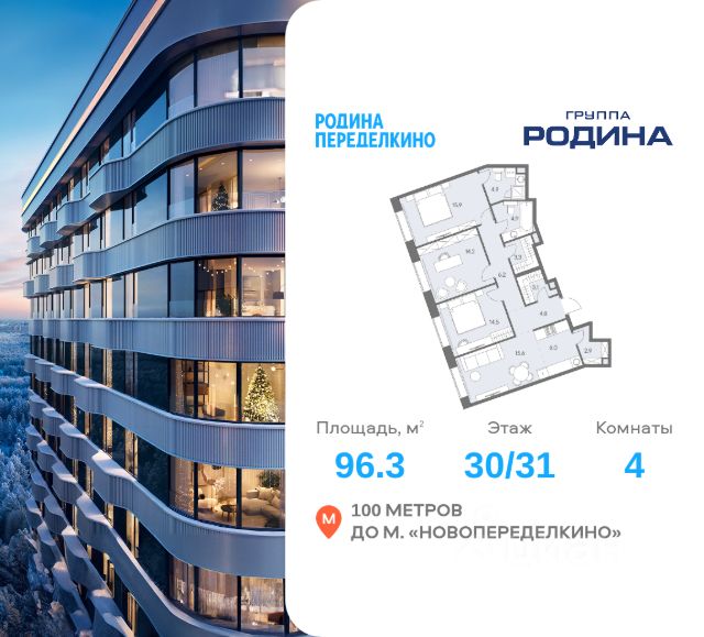 Продаётся 4-комнатная квартира площадью 82.8 м² на 12 этаже в Жилом Комплексе "Родина Переделкино". Первый в России киберспортивный кластер от Группы Родина. Это жилой квартал бизнес-класса на Западе Москвы на границе с Ульяновским лесопарком, состоящий из пяти высотных зданий с подземной одноуровневой автостоянкой. В жилом комплексе широкий выбор вариантов жилья — от компактных студий до просторных 5-комнатных квартир. Помимо комфортных европланировок, представлены уникальные форматы: квартиры с панорамными гостиными, квартиры с террасами на 2 этаже. Преимущества расположения: • 3 минуты пешком до метро "Новопеределкино" • Лесные массивы - чоботовский лес, ульяновский лесопарк и мещерский природный парк. • Прямой выезд на Боровское Шоссе • 30 минут транспортом до делового центра Москва - Сити • 10 минут на машине до аэропорта "Внуково" Развитая инфраструктура: • 5 жилых корпусов • Деловой центр с Welness и SPA • Мультиарена с развлекательным digital - центром • Гастроулица: кофейни, рестораны, стритфуды