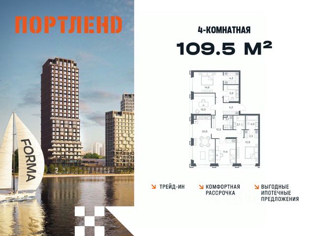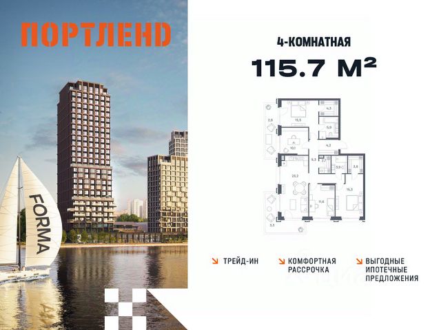Указанная акционная стоимость доступна при 100% оплате или ипотеке без субсидирования. Цена действует до 02.03.2026 23:59:00. Стоимость без акции 55005600. Старт продаж! Продаётся 4-комнатная квартира от застройщика ГК "КОРТРОС" в жилом комплексе бизнес-класса УЛЬТИМА Сити. Квартира расположена на 40 этаже 45 этажного корпуса 1. Общая площадь 106,60 м². Без отделки. УЛЬТИМА Сити — жилой комплекс бизнес-класса в перспективном районе на юго-востоке Москвы. На его территории появятся 9 башен на 756 этажей, двухуровневый подземный паркинг, собственная инфраструктура, включая детский сад и школу. Всего девелопер благоустроит территорию в 2,6 га. Ближайшая станция метро — "Южный порт". Она откроется в 2028 году и будет находиться в 2-х минутах ходьбы. А прямо напротив расположится остановка водного автобуса-электрохода "Синичка". Дорога от квартала будет удобна и для автомобилистов: - до Кремля — 12 км - до МКАД — 12 км - до выезда на ТТК — 3 км - до Садового кольца — 8 км В двух корпусах первой очереди УЛЬТИМА Сити этажностью 45 и 52 реализуется 1 079 квартир с продуманными, рациональными планировочными решениями. В ассортиментной линейке представлены однокомнатные квартиры от 28,2 до 61 кв. м, двухкомнатные лоты от 44,3 до 95,4 кв. м, квартиры с тремя (71 — 115,57 кв. м) и четырьмя спальнями (106,6 — 114,97 кв. м). В экспозиции также есть квартиры с террасами, лоджиями, тремя и четырьмя санузлами, а также с функциональными нишами-кладовыми на кухнях. Запроектированы и эксклюзивные двухуровневые резиденции со вторым светом, в том числе с видом на Москву-реку, площадью от 77,7 до 141,9 кв. м. В рамках проекта запланировано строительство 9 корпусов, школы на 500 учащихся и детского сада на 225 мест. Еще будет создана продуманная инфраструктура для жителей: детские и спортивные площадки, амфитеатр для мероприятий, беседки и теплицы для садоводства, коворкинг, детский клуб и ресторан с открытой террасой. Доступ в жилой комплекс осуществляется по биометрическому контролю - Face ID. Вокруг квартала будет приватная территория с видеонаблюдением и консьерж-сервисом 24/7. Лобби корпусов будут иметь двойные выходы: на улицу и во внутренний закрытый двор.