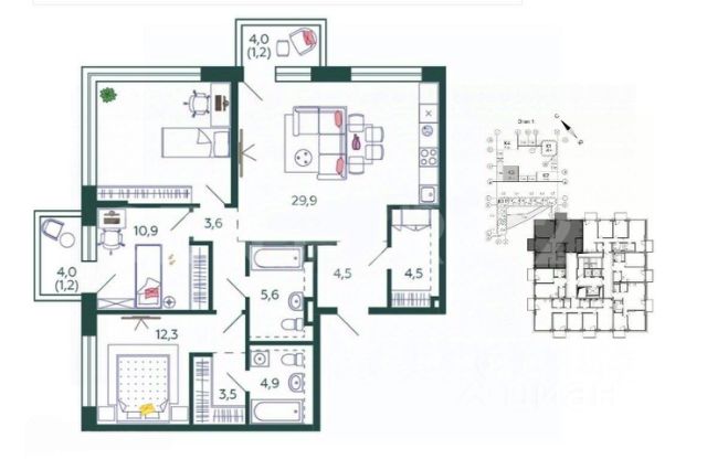 Продаётся 4-комнатная квартира в сданном доме (Корпус 12), срок сдачи: II-кв. 2024, общей площадью 129.7 кв.м., на 3 этаже. Это город в городе, который не подстраивается под старые рамки, а задает новую планку и стандарт жилого района в России. Здесь создается самодостаточная и цельная среда, в которой есть место для реализации потребностей каждого жителя. Архитектура и общественные пространства района спроектированы на основе ежедневных сценариев жизни конкретных пользователей. Весь район спроектирован на основе принципа 15-минутной доступности необходимой инфраструктуры и продуманных прогулочных маршрутов. Разнообразие пешеходных маршрутов и короткие расстояния между основными точками притяжения дают возможность резидентам Shagal больше передвигаться пешком, не выпадая из ритма большого города. При этом разноформатная транспортная сеть района и безопасный скоростной режим создают комфортные условия для перемещений любым другим способом: на автобусе, на машине, на велосипеде. Купить 4-комнатную квартиру - элитное жильё на набережной Марка Шагала в Москве.