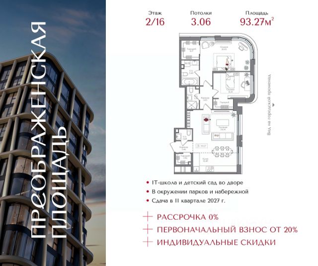 Продаются 4-к апартаменты площадью 96.96 кв.м. на 9-м этаже 20 этажного дома в ЭвоПарк Сокольники от ГК ОСНОВА. "ЭвоПарк Сокольники" расположен в историческом районе Преображенское, в 300 метрах от парка Сокольники. "ЭвоПарк Сокольники" расположен на набережной реки Яуза и находится в 15 минутах пешком от м. "Преображенская площадь". Быстрый выезд на главные транспортные магистрали (ТТК и ул. Стромынка) позволит добраться на личном авто до центра Москвы за полчаса. "ЭвоПарк Сокольники" - это два корпуса переменной этажности (максимально 20 этажей) с апартаментами бизнес-класса и подземным паркингом. В проект благоустройства входит двор с ландшафтным дизайном, который предусматривает зоны тихого отдыха, лестницу с амфитеатром, детские площадки и игровые площадки для детей разных возрастов, зеленые зоны отдыха. Для самых активных здесь оборудована work-out площадка. Два корпуса соединены между собой аркой с видом на парк Сокольники. На уровне 13-18 этажей располагаются видовые террасы с ограждениями из безопасного стекла, где можно насладиться шикарными видами на парк Сокольники и самыми красивыми закатами. Продается 4-комнатная квартира элитные на улице Потешная в Москве.