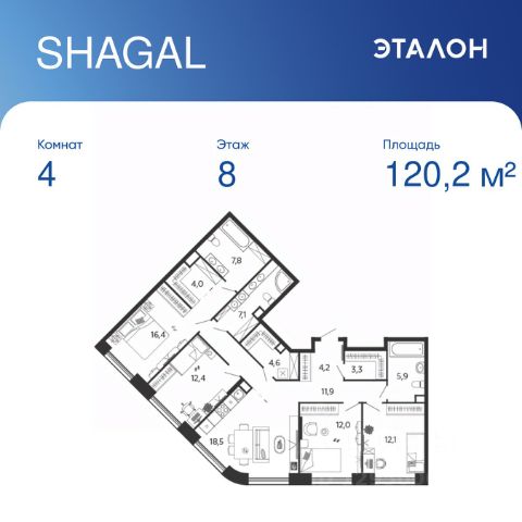 Продается 4-к квартира без отделки в ЖК "Shagal". Общая площадь квартиры — 120.2 кв. м, этаж 8 из 9. Тип дома — монолитный. Цена указана при 100% оплате. Квартал Shagal — крупнейший проект комплексного освоения в Москве. В проекте реализуется продуманная система маршрутов. Еда, покупки, услуги, прогулки, спорт, образование, работа и развлечения — все будет находиться рядом с домом: принцип 15-минутной доступности инфраструктуры и сервисов. Разнообразие и продуманность пешеходных маршрутов, а также короткие расстояния между основными точками притяжения мотивируют резидентов Shagal с удовольствием передвигаться по району пешком, не выпадая из ритма большого города. Продуманная транспортная сеть района и безопасный скоростной режим создают комфортные условия для перемещений любым способом: на автобусе, машине, самокате или велосипеде. Не нужно выезжать из района, чтобы получить комфорт и сервис самого высокого современного стандарта: все необходимые услуги, инфраструктура, парки и вторая по протяженности набережная в городе — на расстоянии 15-минутной прогулки от вашего дома. Квартал Shagal станет первым в Москве жилым районом, где будут комплексно реализованы инновационные подходы в проектировании и строительстве зданий. Архитектурная композиция состоит из домов отличающегося типа. Высотные башни-доминанты с видовыми квартирами, дома пониже, растворяющиеся в спокойствии внутренних двориков, малоэтажные камерные таунхаусы и разноэтажные дома с лоджиями на первой береговой линии соединяются в одно эстетичное современное произведение. В результате создаётся насыщенное идентичное пространство, подчёркнутое плавностью природных форм, наполненное светом, воздухом и свободой.