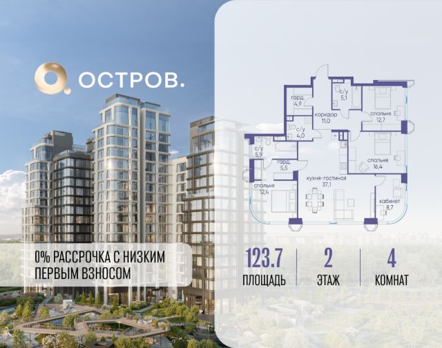 Продаётся четырехкомнатная квартира от застройщика: общая площадь 113.40 м², жилая 57.20 м², кухня 23.70 м², 3, жилой квартал "Остров 12", корпус 3 (12.1 квартал) (секция 1). срок сдачи: 4-кв. 2025. , 3 санузла: 3 совмещенных. В жилой зоне 2 больших окна на одну сторону, хорошая инсоляция. Позвоните сейчас и забронируйте квартиру! Купите квартиру для курортной жизни в Москве в квартале ОСТРОВ.12.1. Это единственный на ОСТРОВЕ квартал бизнес-класса, расположенный на первой линии у реки - здесь царит атмосфера ежедневного отпуска. Дома созданы в узнаваемом футуристичном стиле и выглядят как произведения современного искусства. Для жителей предусмотрены фитнес-рум и детский клуб, гостиная и кинотеатр, переговорные и репетиторские комнаты. На крышах устроены видовые общественные пространства с зонами для йоги, коворкингами, лаунжами. Двор-парк располагает всем необходимым для отдыха и общения всех возрастов. ОСТРОВ.12.1 - часть жилого комплекса на западе Москвы, в 15 минутах езды от центра. Это настоящий заповедник посреди большого города, в окружении реки и 650 га заповедников. Здесь все необходимое находится по соседству: от детского сада до супермаркета, от фитнес-зала до серфинг-центра. На территории созданы все условия для отдыха и общения: клубная инфраструктура в домах и дворы-парки, набережные и променады, маршруты для спортсменов, детей и возрастных жителей. В нескольких минутах ходьбы расположена станция метро "Мнёвники" БКЛ. На автомобиле - 10 минут до Москва-Сити и 15 минут до Садового кольца. Продается 4-комнатная квартира элитные на улице Нижние Мневники в Москве.