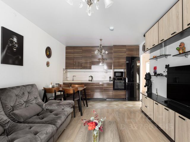 Кухня с выходом на лоджию, со встроенным кухонным гарнитуром на заказ (от пола до потолка), посудомоечная машина Gorenje, духовой шкаф Samsung с функцией СВЧ (духовка и микроволновка 2-в-1), варочная панель Samsung, качественный влагостойкий узорчатый ламинат.
