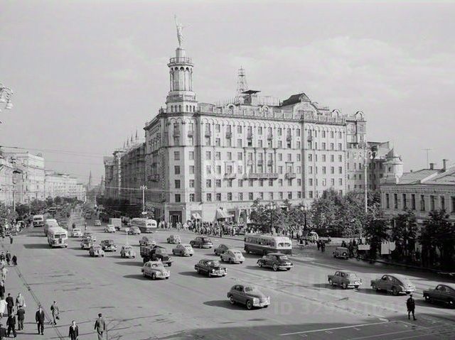Жилой дом построен в 1940—1944 годах по проекту архитектора А. Г. Мордвинова. До 1958 года на угловой башенке стояла статуя девушки с серпом и молотом, моделью которой послужила балерина Ольга Лепешинская (скульптор Г. И. Мотовилов), в связи с чем здание получило обиходное название "дом под юбкой".