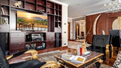 Номер в базе: 12141884. Бонус партнёрам 30% Квартира расположена в знаковом жилом комплексе "Триумф Палас", архитектурном продолжении знаменитых сталинских высоток. ЖК "Триумф Палас" называют восьмым Сталинским небоскребом. Квартира находится на 1-м этаже , но это стандартный 6-й этаж, так как в доме пятиэтажный стилобат с сервисными этажами для резидентов. Объект предлагает полную автономность: на охраняемой территории находятся супермаркет, фитнес-центр World Class, салоны красоты, рестораны, бутик-отель, детские площадки и парк. Транспортная доступность высокая, район отличается развитой инфраструктурой. Квартира выполнена в состоянии полной готовности к проживанию с дизайнерским ремонтом и использованием качественных импортных материалов. Итальянская мебель и техника ведущих мировых брендов гармонично интегрированы в продуманную планировку. Пространство включает просторную гостиную, объединенную с кухней, изолированный кабинет, который может служить дополнительной спальней, и три отдельные спальни. Для комфорта предусмотрены две гардеробные, постирочная зона и два санузла. Ключевой особенностью является большая терраса, предоставляющая дополнительные возможности для организации отдыха. Объект представляет собой сбалансированное предложение для тех, кто ценит статусное расположение, безупречное качество отделки и готовое комфортабельное жилье в премиальном сегменте. Код пользователя: 144948