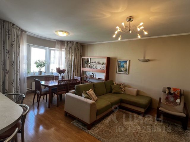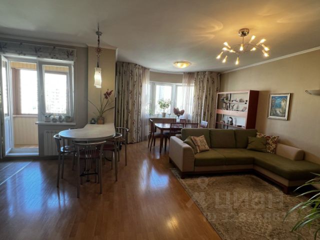 -распашонка, - кухня-гостиная (31,4м²), - спальня и две детские (12,4м²; 10,8 м²; 12,9 м²), - две застекленные лоджии (одна с видом во двор, вторая с видом на Битцевский парк) (4,8 м²; 4,6 м²), - раздельный санузел (5,3 м²; 1,6 м²),- кладовая пенал с полками, - пенал со стиральной машиной и бойлером, - гардеробная (3,4 м²), - прихожая со встроенным шкаф-купе (8,13 м²; 0,8 м²).