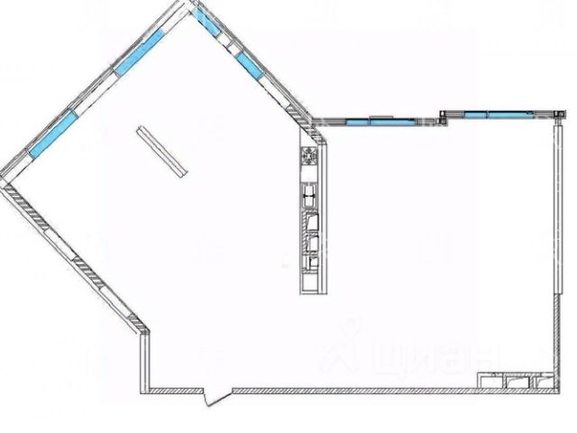 Квартира со свободной планировкой без отделки расположена в корпусе 10 River line. В квартире семь окон. Возможная планировка: просторная угловая кухня-гостиная, три спальни, три санузла, гардеробная, постирочная, холл. Из окон открываются живописные виды в сторону реки Раменки, на парковую зону, на "Москва-Сити" и в благоустроенный внутренний двор комплекса.
