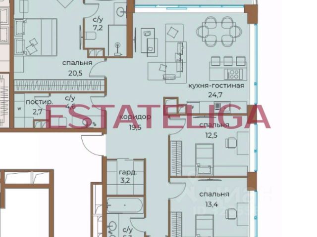 Продаётся четырехкомнатная квартира от застройщика: общая площадь 136.70 м², жилая 37.36 м², кухня 41.70 м², 11, жилой квартал "Остров 7", корпус 3 (7 квартал) (секция 2). срок сдачи: 4-кв. 2025. , 3 санузла: 1 раздельный и 2 совмещенных. В жилой зоне 2 больших окна на одну сторону, хорошая инсоляция. Позвоните сейчас и забронируйте квартиру! Купите квартиру в доме у прибрежного парка, в квартале ОСТРОВ.7. Это семь корпусов премиум- и бизнес-класса в одном из лучших мест ОСТРОВА - между бульваром и парком, поблизости от реки. Стильные корпуса имеют узнаваемый вид благодаря бионической пластике фасадов, приподнятых над землей. Для жителей предусмотрены детский клуб, фитнес-рум, коворкинг, переговорные, лаунжи. На крышах устроены видовые общественные пространства с зонами для отдыха и спорта. Двор расположен на двух уровнях: нижний ландшафтный парк и верхняя городская терраса. ОСТРОВ.7 - часть жилого комплекса на западе Москвы, в 15 минутах езды от центра. Это настоящий заповедник посреди большого города, в окружении реки и 650 га заповедников. Здесь все необходимое находится по соседству: от детского сада до супермаркета, от фитнес-зала до серфинг-центра. На территории созданы все условия для отдыха и общения: клубная инфраструктура в домах и дворы-парки, набережные и променады, маршруты для спортсменов, детей и возрастных жителей. В нескольких минутах ходьбы расположена станция метро "Терехово" БКЛ. На автомобиле - 10 минут до Москва-Сити и 15 минут до Садового кольца.