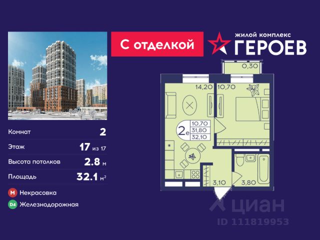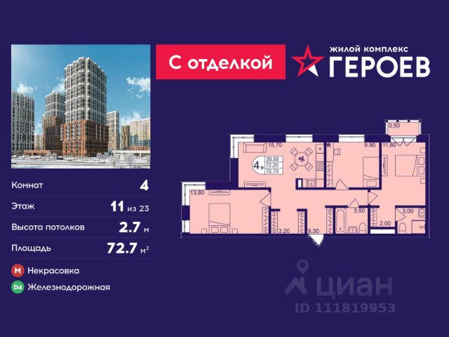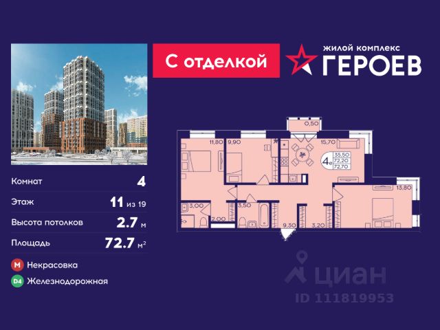 • ✓ В базе Циан 6 4-комнатных квартир на 11 этаже рядом с метро Железнодорожная