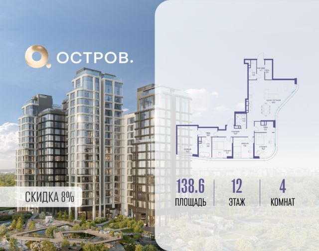 Цена указана с учётом скидки при 100%-й оплате, несубсидированной ипотеке, рассрочке (кроме программы "Рассрочка 0%"). В жилом квартале продаётся 4-комнатная квартира площадью 89.90 кв.м white box. Квартира расположена на 12 этаже 48 этажного корпуса 1 в жилом комплексе комфорт класса Левел Звенигородская (компания Level Group/Левел групп). Отличная транспортная доступность - 5 мин. пешком до метро "Звенигородская" (откроется к окончанию строительства); - 18 мин. пешком до станции МЦК "Хорошёво" и станции БКЛ "Народное ополчение"; - 4 мин. на авто до ТТК; - 8 мин. на авто до Садового кольца; - 15 мин. на авто до Кремля. Продуманный архитектурный проект - Концепция от студии Станислава Михаловского, в основу которой легло единение природы и города; - Двухкамерные стеклопакеты в окнах, алюминиевый и ПВХ профиль - в квартирах тепло зимой и прохладно летом; - С верхних этажей откроются панорамные виды на город, Москву-реку, "Москва-Сити" и Москворецкий парк; - Лобби со всеми удобствами: окна в пол, высокие потолки до 4,7 м, лаунж-зоны, колясочные, гостевые санузлы и мойки для лап животных; - Централизованные водонагреватели гарантируют круглогодичную подачу горячей воды в каждую квартиру. Благоустройство Концепция благоустройства разработана совместно с бюро UNK landscape. Высота башен приближается к 200 метрам - они словно касаются неба. Небесный простор проецируется на территорию двора с помощью подсветки, визуально увеличивая пространство и отражаясь в авторских элементах архитектуры. На территории площадью 0,45 га расположатся: - "Облако событий" - место встреч и общения; - "Облако спорта" - всё для поддержания себя в форме; - "Облако принятия решений" - пространство для работы на свежем воздухе; - "Облако спокойствия" - для отдыха в тишине природы; - "Облако игр" - площадки для подростков и самых маленьких. Инфраструктура В жилом комплексе откроется 21 коммерческое помещение: продуктовые лавки, кафе, салоны красоты, службы доставки и творческие студии. Этап 1 включает строительство двухуровневого подземного паркинга. Всего здесь расположится 351 машино-место, включая семейные места, и 264 кладовых помещения. В распоряжении жителей развитая инфраструктура района: 15 супермаркетов, 5 спортивных объектов, 9 медучреждений, 7 детских садов, 4 школы, 3 благоустроенных парка - всё в шаговой доступности. Инженерия Комфортное перемещение внутри домов будут обеспечивать надёжные лифты с доступом в паркинг с жилых этажей. В каждом корпусе предусмотрено до шести кабин, включая сервисные лифты. Попасть на территорию комплекса можно только по единому ключу доступа. Видеонаблюдение установлено на входах в подъезды, в лобби, в общих зонах, на въезде в паркинг. Гости смогут связаться с жителями дома через входные видеопанели, а управлять доступом на территорию можно через видеодомофон или приложение на телефоне.