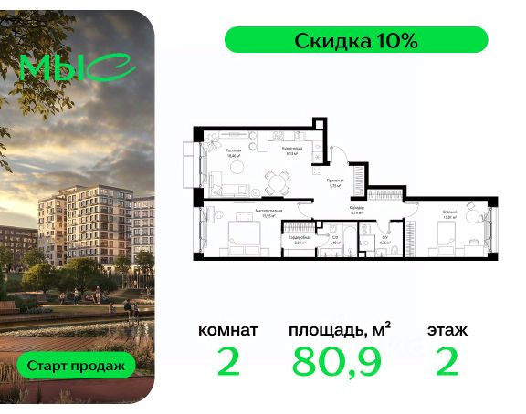 Прямая продажа от застройщика. Продаётся 4-комнатная квартира общей площадью 143.84 м² без отделки в премиальном жилом комплексе "МЫС" на 12-м этаже 12 этажного дома. Квартира расположена в корпусе "Сибирь". Проект МЫС — это, прежде всего, идеальное место для семей. В рамках проекта построят государственную школу, два детских сада и дворец спорта площадью 20 000 м2 с термальным комплексом, выплывным бассейном, фитнес-залом, теннисными, сквош и падел кортами и секциями для детей. На территории площадью, сравнимой с тремя парками Зарядье, появятся кафе и рестораны, пруд с набережной, спортивные и детские площадки, скейт-парк, лыжные и веломаршруты. Расположение: - 2 минуты до скоростной трассы М1 и Минского шоссе; - 10 минут до МКАД; - 15 минут до МЦД Лесной Городок - 20 минут до делового центра "Москва-Сити"; - 28 минут до аэропорта "Внуково". Благоустройство: - велосипедные и лыжные маршруты; - собственная набережная и парк; - лаунж-зоны в окружении природы; - беседки у очага; - дворец спорта площадью 20 000 м²; - термальный комплекс с тремя бассейнами; - 4 теннисных и падел-корта; - 6 сквош-кортов; - многофункциональный спортзал; - скейт-парк; - просторная площадь для прогулок с фонтаном; - детский клуб с творческими секциями; - гастро-доминанта; - кафе у пруда, рестораны, ритейл. Окружение - соседство с лесным фондом; - школа на 1250 мест и 2 детских сада на 350 и 255 мест; - Дубковский и Подушкинский леса, парк "Рассказовка", Мещерский парк. Действуют специальные условия при 100% оплате, подробности уточняйте у менеджера в офисе продаж.