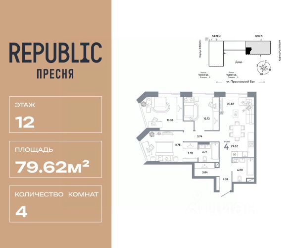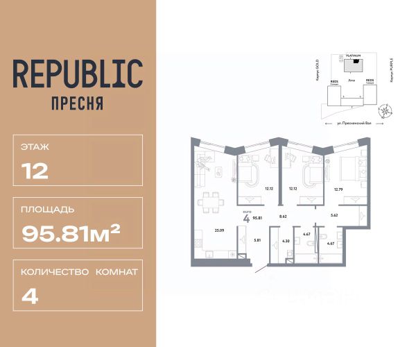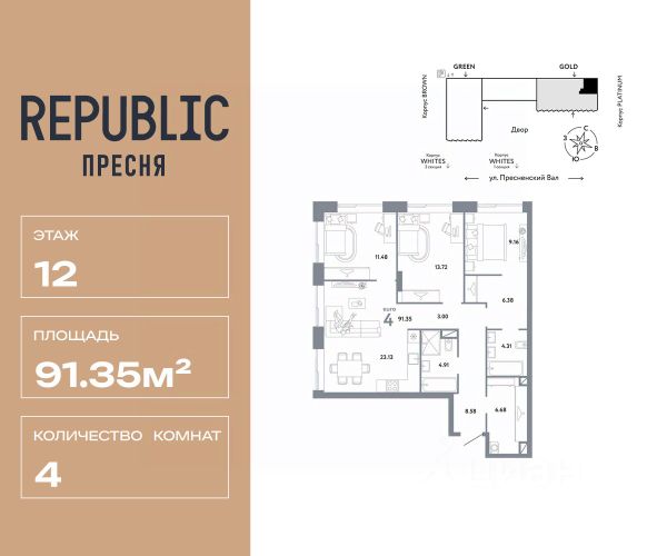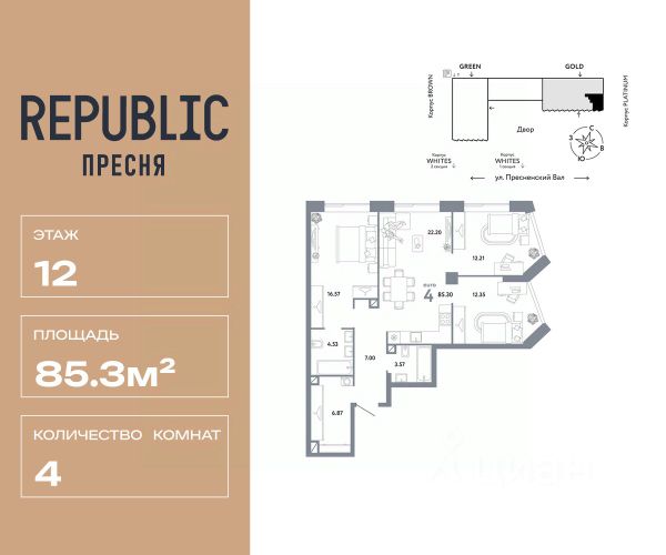 В продаже 4-комнатная квартира квартира в элитном квартале "Тишинский бульвар". Общая площадь квартиры - 177.50 кв.м. Этаж 12 из 14. Корпус Ивовый 6. "Тишинский бульвар" - тихий зелёный элитный квартал на Тишинке, в престижном и комфортном районе центра Москвы. В нём создан уникальный для элитного дома прогулочный бульвар в своём огромном парке 1,9 га. В парке оборудованы зоны для активного и тихого отдыха, крытые галереи, приватные зелёные комнаты, многофункциональная спортивная площадка, воркаут-зона, детская площадка, сухой фонтан, ручей. В пешей доступности Римско-католический кафедральный собор. Всего в полутора километрах от квартала находятся Патриаршие пруды - излюбленное место для летних прогулок, воскресных бранчей и романтических ужинов. Белая площадь расположена ещё ближе - на расстоянии 1,2 километра. Это точка концентрации деловой жизни и модных ресторанов. В "Тишинский бульваре" только для жителей и их гостей создан уникальный для элитного дома прогулочный бульвар в собственном огромном парке площадью 2,1 га, который занимает 70% территории квартала. Бульвар проходит через весь квартал и объединяет в общее пространство три двора: Кленовый, Рябиновый и Ивовый. В парке созданы крытые галереи и приватные зелёные комнаты для отдыха и медитаций в любую погоду. Насыщенное озеленение многолетними растениями с разными периодами цветения сохраняет территорию квартала красивой круглый год. В квартале насыщенная инфраструктура только для жителей, включая Clubhouse. Здесь оборудованы пространства для здорового образа жизни по стандарту FIT LAB: в парке - многофункциональная спортивная площадка, воркаут-зона, место для занятий йогой и медитации; бесплатный фитнес-клуб с бассейном. Для маленьких жителей доступны детская площадка и игровая комната по стандарту KIDS LAB. Дома оснащены самыми полными и лучшими системами.