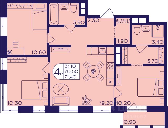 Продаётся 4-комнатная квартира в строящемся доме (Корпус 410), срок сдачи: I-кв. 2027, общей площадью 71.4 кв.м., на 13 этаже. ЖК "Героев" возводится в центре г.о. Балашиха, в мкрн Железнодорожный. Проект представляет собой 4 квартала монолитно-кирпичных домов комфорт-класса. Предлагаются студии, 1-, 2- и 3-комнатные квартиры с готовой отделкой; планировки - евро и классика. На территории построят детские сады и школы. В центральной части застройки оборудуют зоны для спорта и командных спортивных игр, велодорожки, детские игровые площадки и сквер с местами для отдыха. На первых этажах жилых корпусов будут магазины, банки, кафе и другие предприятия сферы услуг и торговли. Возле домов организуют авто- и велопарковки. В пешей доступности находится обширная зелёная зона - Ольгинский лесопарк, а также обжитые районы с развитой инфраструктурой, где работают детские сады и гимназии, поликлиники и ТЦ, школа искусств, спорткомплекс. Рядом с комплексом находится несколько остановок общественного транспорта. До метро "Некрасовка" можно добраться за 20 мин. на автобусе. В 5-7 минутах езды на маршрутке или в 15-20 минутах ходьбы располагается ст. Железнодорожная, путь со станции до Курского вокзала занимает 25 минут на "Спутнике". Кроме того, планируется запуск МЦД-4 от Железнодорожного до Апрелевки с переходами на метро и МЦК. На автомобиле до Москвы можно доехать за полчаса по Носовихинскому или Косинскому шоссе.