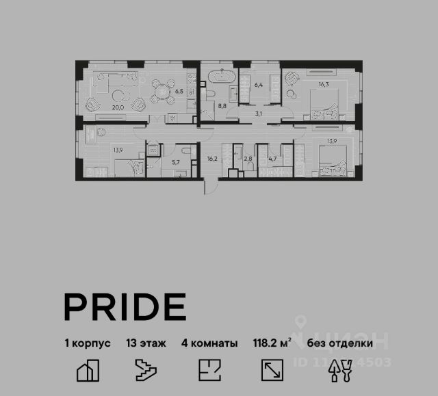 В премиальном жилом квартале PRIDE продается 4-комнатная квартира в 1 корпусе, на 13 этаже, в секции 6. Её общая площадь составляет 118.5 м². Пространство включает 3 уютные спальни 14,1 м², 14,2 м², 15,6 м², просторную кухню-гостиную 28,9 м² и 2 ванные комнаты 5,7 м² и 8,4 м². Удобная локация: Жилой квартал расположен в 15 минутах от Цветного бульвара в историческом районе Марьина Роща. До любой точки города быстро и удобно добраться, как на общественном транспорте, так и на авто — комплекс находится всего в 3 минутах от ТТК и в пешей доступности от метро. Яркая архитектура с переменной высотностью от 7 до 22 этажей от именитого бюро APEX формирует запоминающийся облик проекта. Развитая инфраструктура: Территория квартала делится на несколько отдельных частей: открытый просторный бульвар 3500 м² для прогулок и два внутренних камерных двора. Внутри предусмотрены площадки для спорта, места для игр и тихие пространства для отдыха и неторопливого общения. Коммерческие и торговые помещения спроектированы на уровне первых этажей: супермаркеты, магазины, рестораны и кофейни, барбершоп, спа-салон и другие сервисные точки. Образовательный центр со школой на 257 учеников и детским садом на 112 мест на собственной территории квартал - идеальное решение для семей с детьми. Таким образом, внутренняя инфраструктура PRIDE обеспечит все базовые потребности будущих жителей. Благоустроенная территория: Ландшафтный дизайн с многоуровневым и замысловатым озеленением будет радовать жителей на протяжении всех сезонов — богатая флора дворов включает в себя несколько десятков видов растений. Лобби как в лучших отелях мира: На первых этажах резидентов и гостей встретят лобби с авторским дизайном от Sundukovy Sisters, бюро знаменито своими работами для отелей и ресторанов премиум-класса во всем мире. Надежный застройщик: Девелопер PIONEER — компания с 22-летней историей. В портфеле — 40 проектов жилой, коммерческой, социальной и многофункциональной недвижимости в Москве и Санкт-Петербурге. С 2001 года было реализовано 2,9 млн м². В настоящее время 1,6 млн м² находятся в стадии проектирования и строительства. Среди новых знаковых проектов девелопера — премиальные жилые кварталы и деловые объекты класса A.