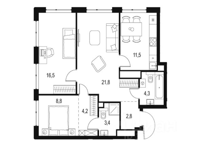 • ✓ В базе Циан 1 4-комнатных квартир на 13 этаже рядом с метро Нагатинская