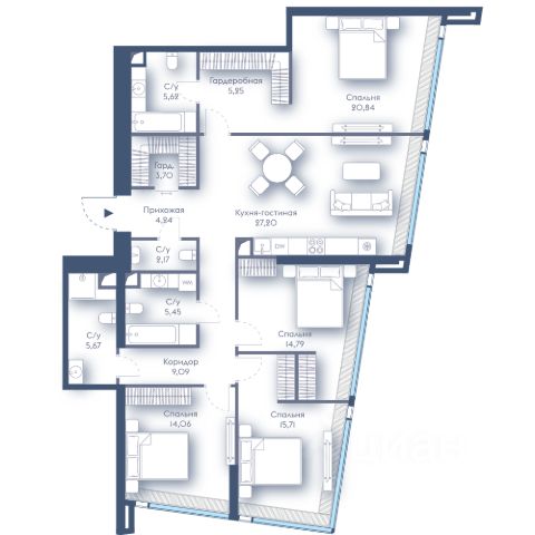 • ✓ В базе Циан 1 4-комнатных квартир на 14 этаже рядом с метро Деловой центр (Большая кольцевая линия)