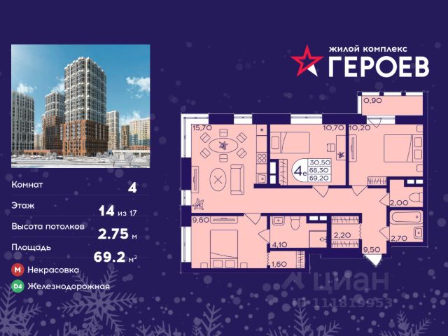 Продаётся 4-комнатная квартира в формате евро 72.70 кв. м. в жилом комплексе "Героев" в Балашихе, Железнодорожный. Квартира расположена на 14 этаже 611 корпуса. В наличии квартиры с отделкой. Всего 40 минут до центра Москвы. При покупке квартиры в сданном доме ключи выдаются сразу! Жилой квартал "Героев" - это уютный проект для семей с детьми. В квартале созданы все условия для досуга всех возрастов: игровые и спортивные площадки, места для отдыха и прогулочные зоны. За 15 минут можно дойти от дома до Ольгинского лесопарка, популярного места для отдыха на свежем воздухе. На территории жилого комплекса уже открыт детский сад на 250 мест и началось строительство еще одного - для 220 малышей, а также школы для 1320 учеников. Рядом работают магазины, кафе, супермаркеты, пункты выдачи. Преимущества: • В уютных светлых квартирах с просторными кухнями-гостиными удобно встречать гостей и проводить время наедине друг с другом. • Благодаря увеличенному остеклению в комнатах много света. • Квартиры продаются с отделкой, можно заселяться сразу после получения ключей.