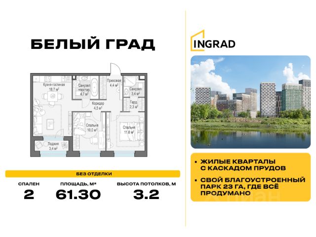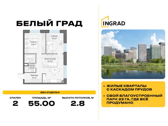 Прямая продажа от девелопера. В жилом квартале комфорт-класса "Белый Град" (девелопер ingrad) продаётся 4-спальная квартира площадью 75.50 кв.м без отделки. Квартира расположена на 15 этаже 20-этажного дома, корпус 12.1. Расположение: "Белый Град" расположен в благоприятном северном направлении Москвы: в комфортной близости ко всем ее возможностям. Вы будете жить в заповедном месте с благородной историей и красивой природой. Исторически у слияния двух рек - Сукромки и Яузы - на возвышении располагалось село Тайнинское. На протяжении веков оно было облюбовано царями и великими князьями. Белокаменный храм, которым вы будете любоваться в окнах своего нового дома, - уникальный памятник русского зодчества. Отличная транспортная доступность: Новый микрорайон находится в 1 км от МКАД и 500 м от Осташковского шоссе. Добраться до столицы можно не только на автомобиле: сеть общественного транспорта в районе квартала активно развивается и дополняется новыми маршрутами: 35 минут до метро "Медведково", 38 минут до ж/д станции "Мытищи". Особенности комплекса и благоустройство: Вы будете жить в заповедном месте с благородной историей на берегу реки Сукромки. Почти 40% площади квартала занимает благоустроенная природная территория. У каждого из трех кварталов своё тематическое наполнение. Функциональная насыщенность территории многообразна: сенсорные площадки и песочницы для малышей, отдельные развивающие игровые зоны для детей от 3 до 5 и от 5 до 11 лет, игровые зоны для подростков. Отдельный парк для тренировки и выгула собак. Зона воркаута с современными тренажерами и многофункциональные спортивные площадки для командных видов спорта, поляны для йоги, навесы с зонами для тихого отдыха, веломаршрут протяженностью более 5 километров. Социальная инфраструктура многогранна: включает 4 детских сада, две школы, поликлинику и физкультурно-оздоровительный комплекс с бассейном, торговый центр и 2 административно-офисных здания. Открытые многоуровневые паркинги по периферии кварталов и паркинг в стилобатной части освободят дворы от машин, велопарковки позволят не заставлять красивые холлы Стоимость квартиры - 17 230 000 Р. Срок сдачи - 3 квартал 2026. Более подробную информацию по объекту уточняйте по телефону и в отделе продаж.