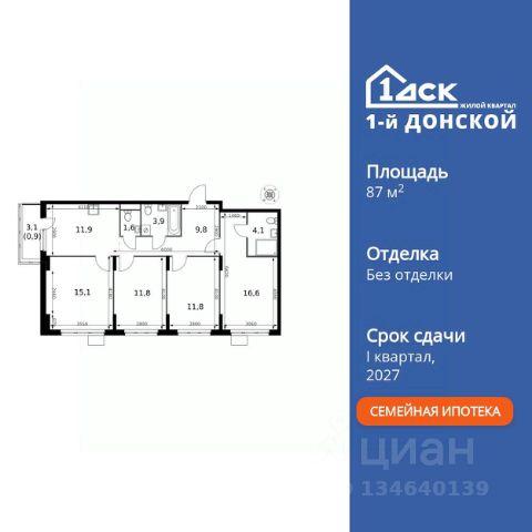 ТОЛЬКО 4 ДНЯ ДО 10.02 • Дополнительная скидка 10% • Ставка 10% по стандартной ипотеке для всех без наценок • Ставка 3,5% по семейной ипотеке Успейте купить выгодно! Прямая продажа от застройщика! Жилой Комплекс класса Комфорт Плюс. Продаётся 4-к квартира номер 145 общей площадью 87.5 кв.м. на 15-м этаже 24 этажного здания. Без отделки. Особенности квартиры: - МЦД-5 в пешей доступности - Квартал с собственной набережной - Свои 2 детских сада и школа - Мастер-зона с санузлом. Уют и комфорт в одном пространстве. - Угловая планировка - больше пространства для ваших идей. - Раздельный санузел - больше удобства для всех членов семьи. - Евроформат - просторное и удобное жилье с отличной планировкой. - Кухня-гостиная - идеальное пространство для встреч с близкими. - Балкон - открытое пространство для отдыха. Информация о комплексе: Комплекс 1-й Донской расположен в 7 км от МКАД по трассе М-4 Дон. В нем сочетаются все плюсы комфортной городской среды и природного окружения. В проекте достаточно большой процент квартир, выходящих на 2-3 стороны света. Секции-маяки формируют у зданий визуальную L-форму, что придает застройке структуру и ритмику объемов. На ощущение динамики работает и разная этажность зданий. Теплая цветовая палитра фасадов отражает природу Дона. Вечерами дома преображаются благодаря архитектурной подсветке, выгодно выделяясь на городском фоне. Природа оказывает положительное влияние на человека на всех уровнях восприятия: через зрение, запахи, звуки, тактильные ощущения. Неподалеку от ЖК Первый Донской: Ермолинский парк, Видновский лесопарк, Жуковский парк Транспортная доступность: Комплекс удобно расположен в 7 км от МКАД по трассе М-4 Дон (через Видное). Расстояние до Каширского шоссе составляет 12 км. Добраться до метро и центра Москвы позволяет развитая сеть маршрутов общественного наземного транспорта. Действующая ж/д станция Калинина Павелецкого направления в 15-17 минутах ходьбы (МЦД-5 в 2025-2026 гг). Внутренняя инфраструктура: Проект 1-й Донской соседствует с бурно развивающимся районом, основная инфраструктура которого уже сложилась. В строительстве современных жилых комплексов в округе есть свои плюсы: здесь формируется продуманная и комфортная городская среда. Что касается внутренней инфраструктуры, на территории квартала будут расположены собственные муниципальные 2 детских садика и школа, которые помогут совместить приятное с полезным. Территория комплекса пронизана целой сетью живописных пешеходных маршрутов, позволяющих попасть в любой уголок района. Основные пути, как водится, "торговые". Они проходят вдоль магазинов, кафе и других представителей коммерции и отделяются от проезжей части зеленой "фито" - стеной. Среди крупных социальных объектов предусмотрены своя поликлиника и торговый центр с примыкающей площадью для общественных мероприятий. Уют начинается с продуманного подъезда. Сквозные подъезды наполнены светом благодаря сплошному остеклению. Вход в них есть и с улицы, и