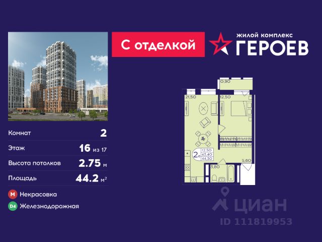 Продаётся 4-комнатная квартира 69.2 кв. м. в жилом комплексе "Героев" в Балашихе, Железнодорожный. Квартира расположена на 15 этаже 410 корпуса. Все квартиры представлены с чистовой отделкой. Вам не нужно тратить время и дополнительные финансы на ремонт или жить в шуме строительных работ - достаточно перевести свои вещи, расставить мебель и всё готово! Жилой квартал "Героев" - это уютный проект для семей с детьми. Всего 40 минут до центра Москвы. В квартале созданы все условия для досуга всех возрастов: игровые и спортивные площадки, места для отдыха и прогулок, магазины, кафе и пункты выдачи. За 15 минут можно дойти от дома до Ольгинского лесопарка - популярного места для прогулок и отдыха на свежем воздухе. Здесь приятно гулять всей семьёй, заниматься спортом или устроить пикник в выходной день. Преимущества: Квартира с готовой отделкой. Пространство полностью подготовлено для жизни: не нужно тратить время и деньги на ремонт или ждать его окончания. После получения ключей достаточно расставить мебель - и можно сразу заезжать и жить. Продуманные и светлые планировки. Просторные кухни-гостиные создают комфортное пространство для отдыха и встреч с близкими. В квартирах предусмотрены удобные гардеробные, благодаря чему легко поддерживать порядок и не перегружать комнаты шкафами. Увеличенное остекление. Большие окна наполняют квартиру естественным светом в течение всего дня, создавая ощущение простора и уюта, а также визуально расширяя пространство и делая интерьер более воздушным. Пешая доступность до станции Железнодорожная (МЦД-4) - дорога займёт не более 30 минут до центра Москвы: станции метро "Курская", "Площадь Ильича" или ТПУ Нижегородская.